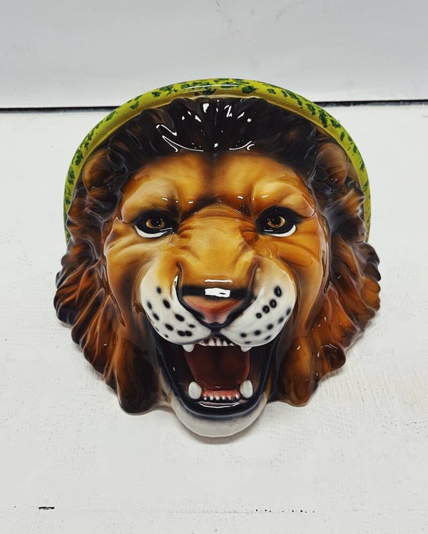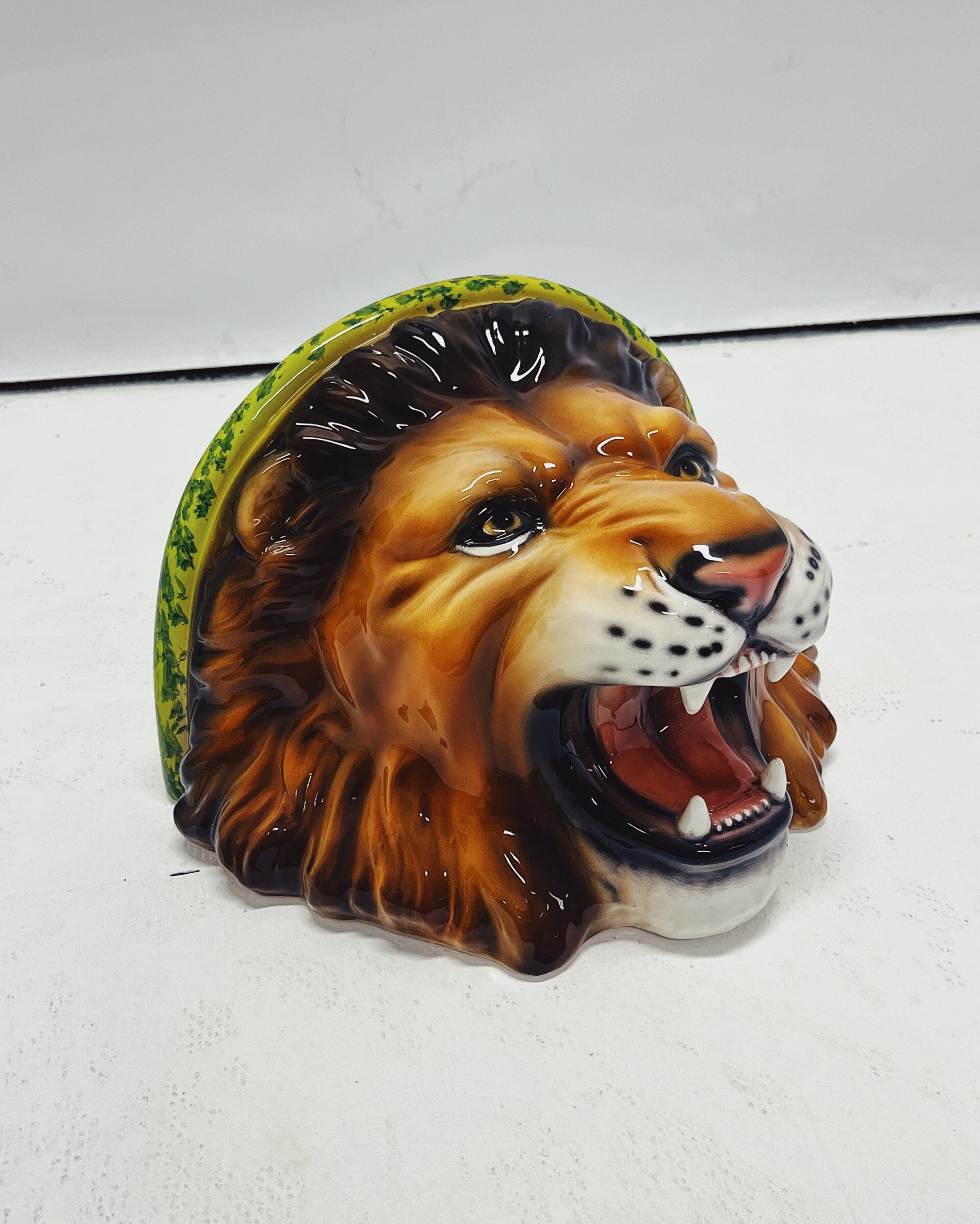 Uniek handgemaakt beeld van een leeuw. Dit Hollywood Regency beeld, vervaardigd van met de hand beschilderd keramiek en gemaakt in Italië, zal ongetwijfeld een verbluffende en stoere uitstraling aan je interieur toevoegen!