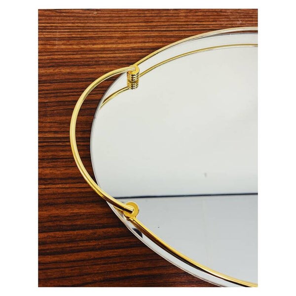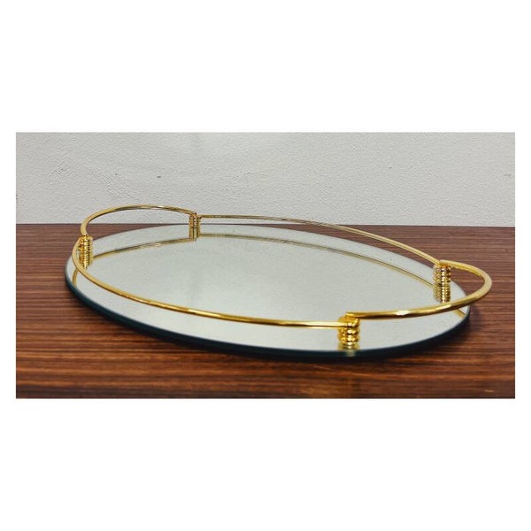 Breng de Hollywood Regency sferen in huis met dienblad van spiegelglas. Het blad is in goede conditie en leuk om kaarsen en andere kleine accessoires op neer te zetten.Afmetingen Breedte: 41cmDiepte: 28cm