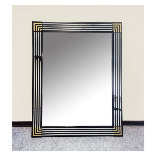 Grote design Deknudt spiegel. Deze prachtige spiegel is wel een heel bijzonder exemplaar! De spiegel heeft prachtige facet geslepen details in de randen en wordt afgewerkt met gouden messing hoeken. DeKnudt was een grote spiegel fabrikant vanaf de jaren 70 tot heden. Dit vintage model is in enorm goede staat en helemaal passend in de Hollywood Regency stijl. De spiegel heeft een stevig ophangsysteem!