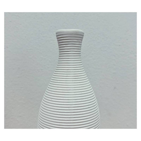Moderne minimalistische witte vaas. De vaas is vervaardigd uit keramiek en heeft een cilindrische vorm met horizontale groeven.AfmetingenHoogte: 25cm