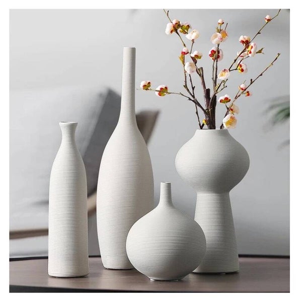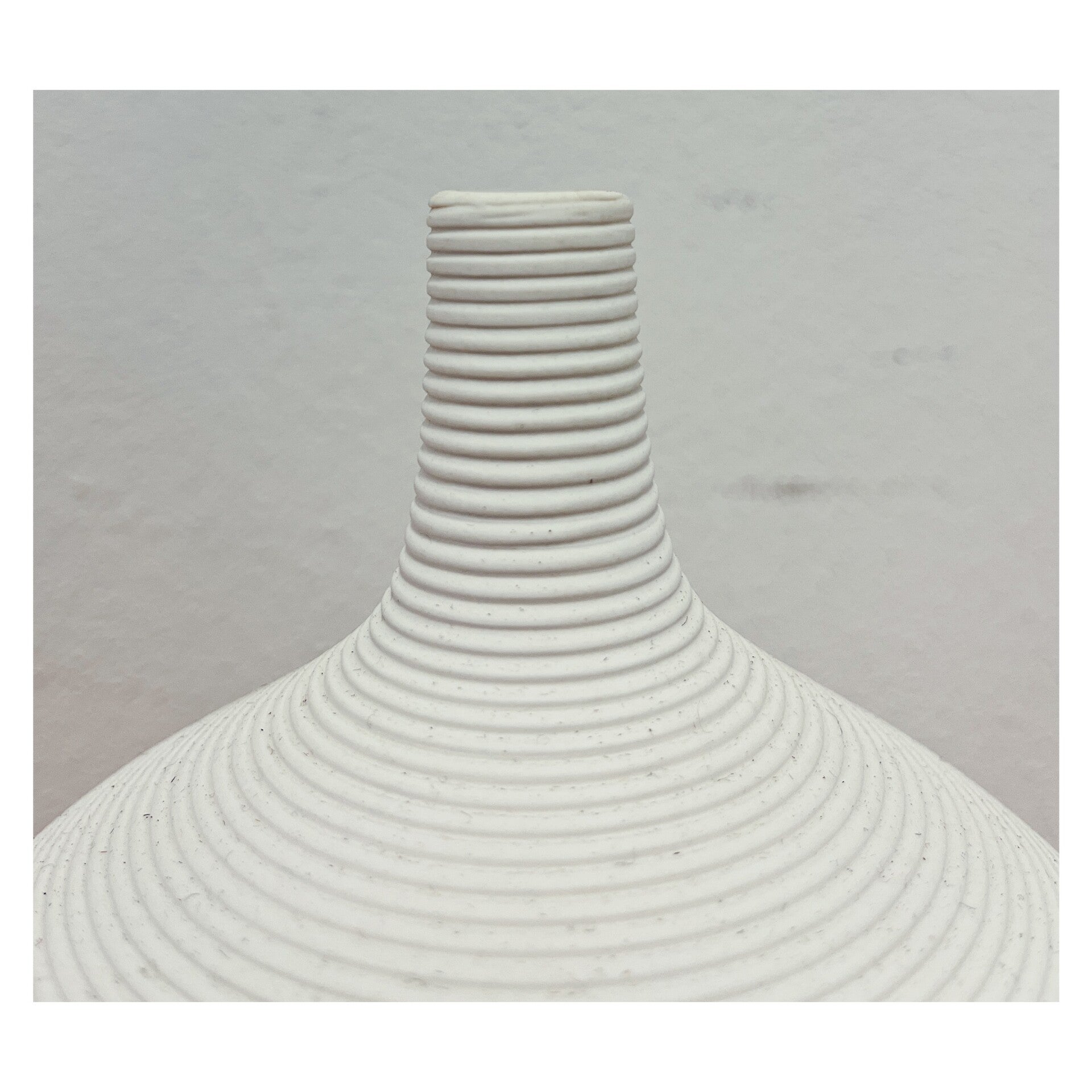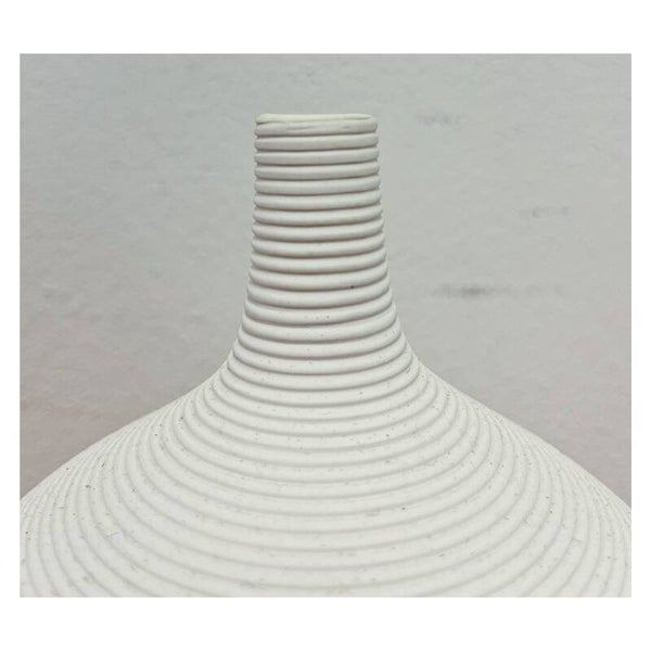 Moderne minimalistische witte vaas. De vaas is vervaardigd uit keramiek en heeft een bolvorm met horizontale groeven.AfmetingenHoogte: 25cm