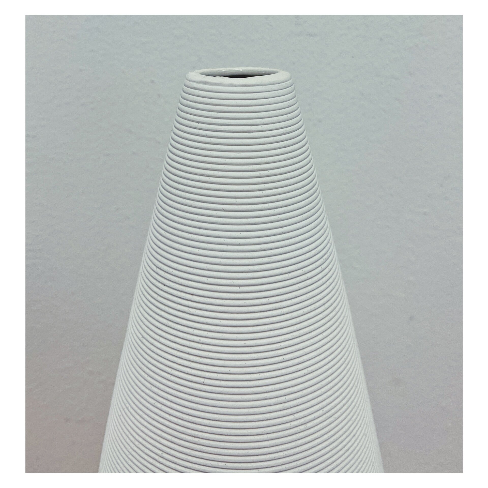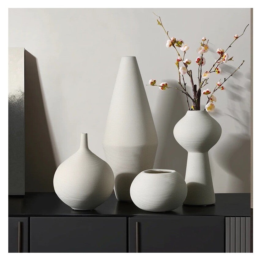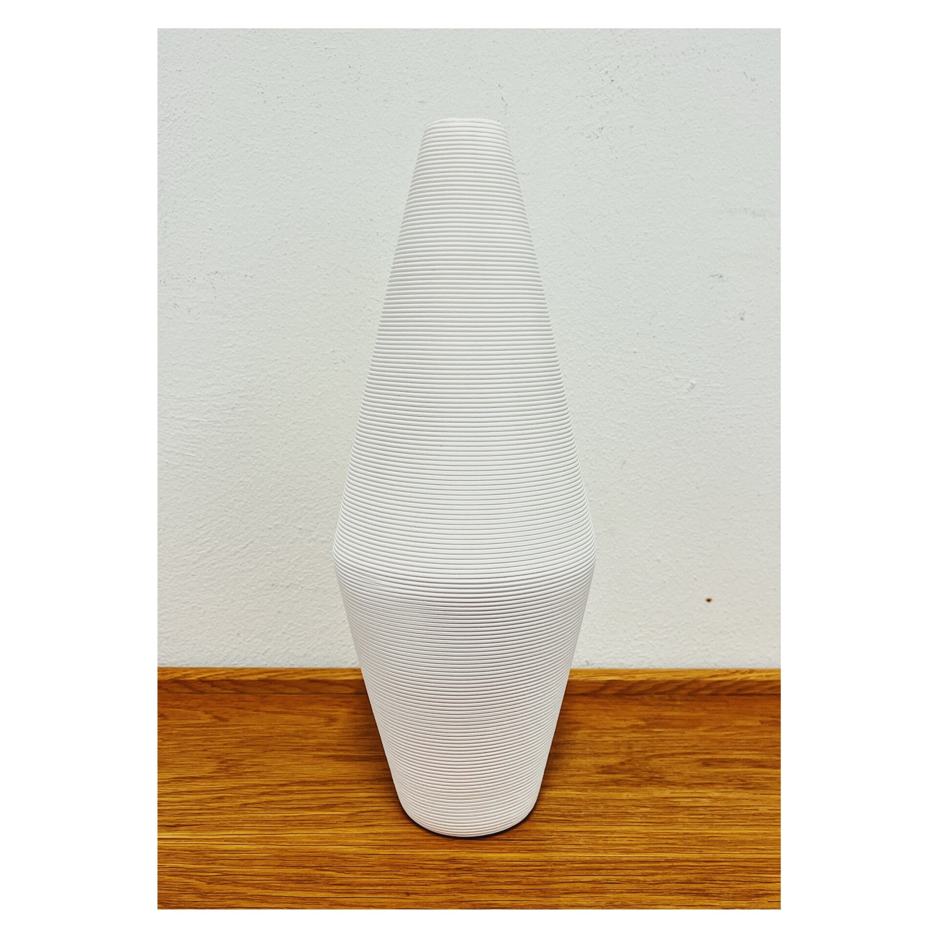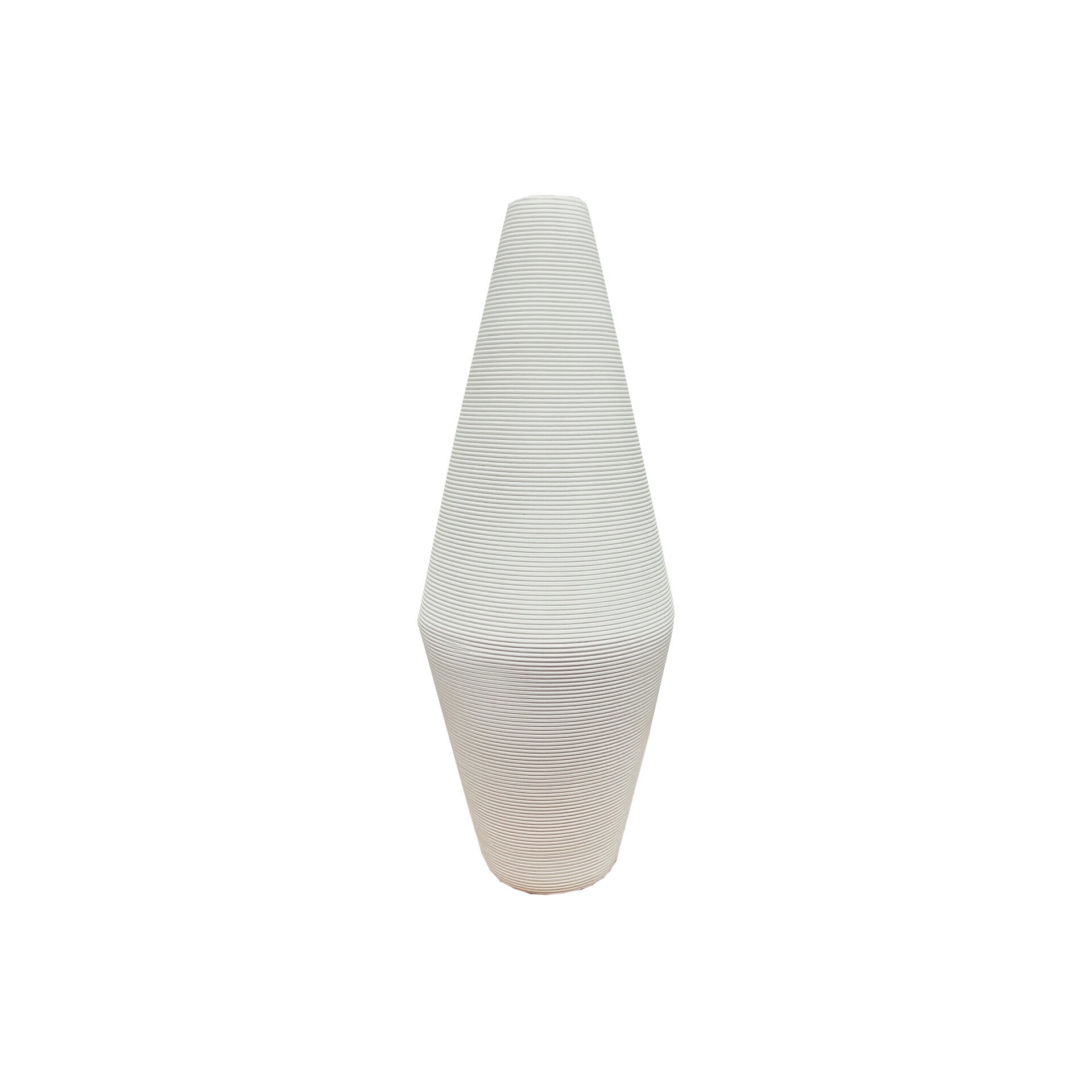 Moderne minimalistische witte vaas. De vaas is vervaardigd uit keramiek en heeft een bijzondere vorm met horizontale groeven.AfmetingenHoogte: 36cm