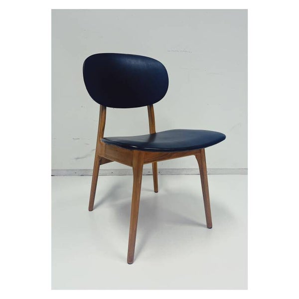 Set van vier vintage stoelen bekleed met skaileer. Door het minimalistische design zijn deze stoelen een echte aanwinst voor elke eettafel. De onderstellen zijn van teakhout. De stoelen zitten nog heerlijk en helemaal klaar voor een volgende ronde.