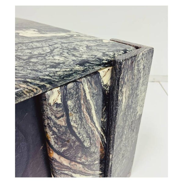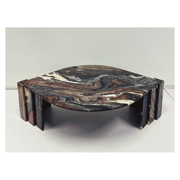 Vintage marmeren salontafel 'Teardrop' gemaakt in Italië. De tafel heeft uniek ge-aderd Rosso Luana marmer in de kleuren: zwart, bruin, groen, wit en grijs. De grote salontafel heet een prachtige druppelvorm en wordt de eye catcher in je huis! Los van wat kleine krasjes (nauwelijks zichtbaar) is de tafel in top staat!