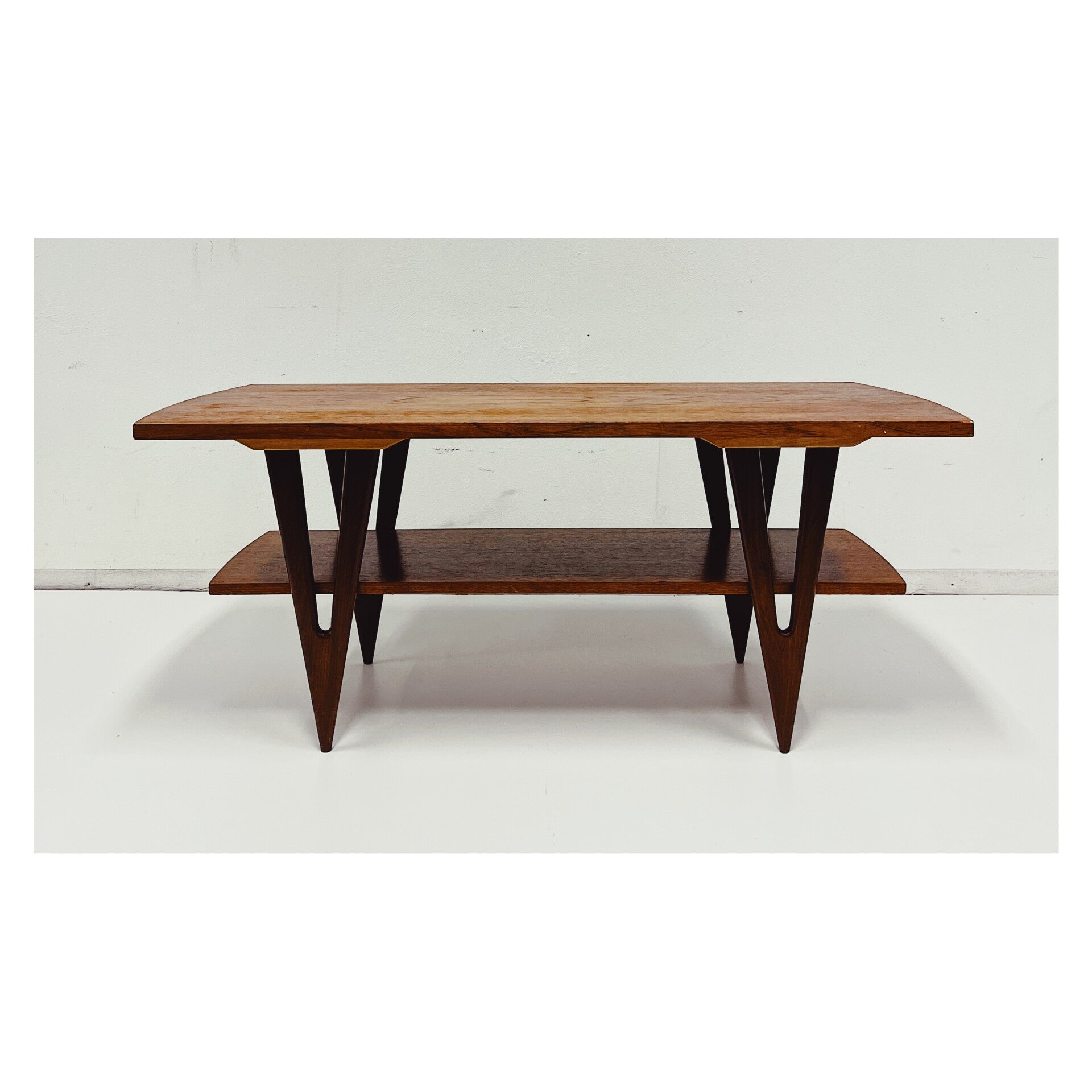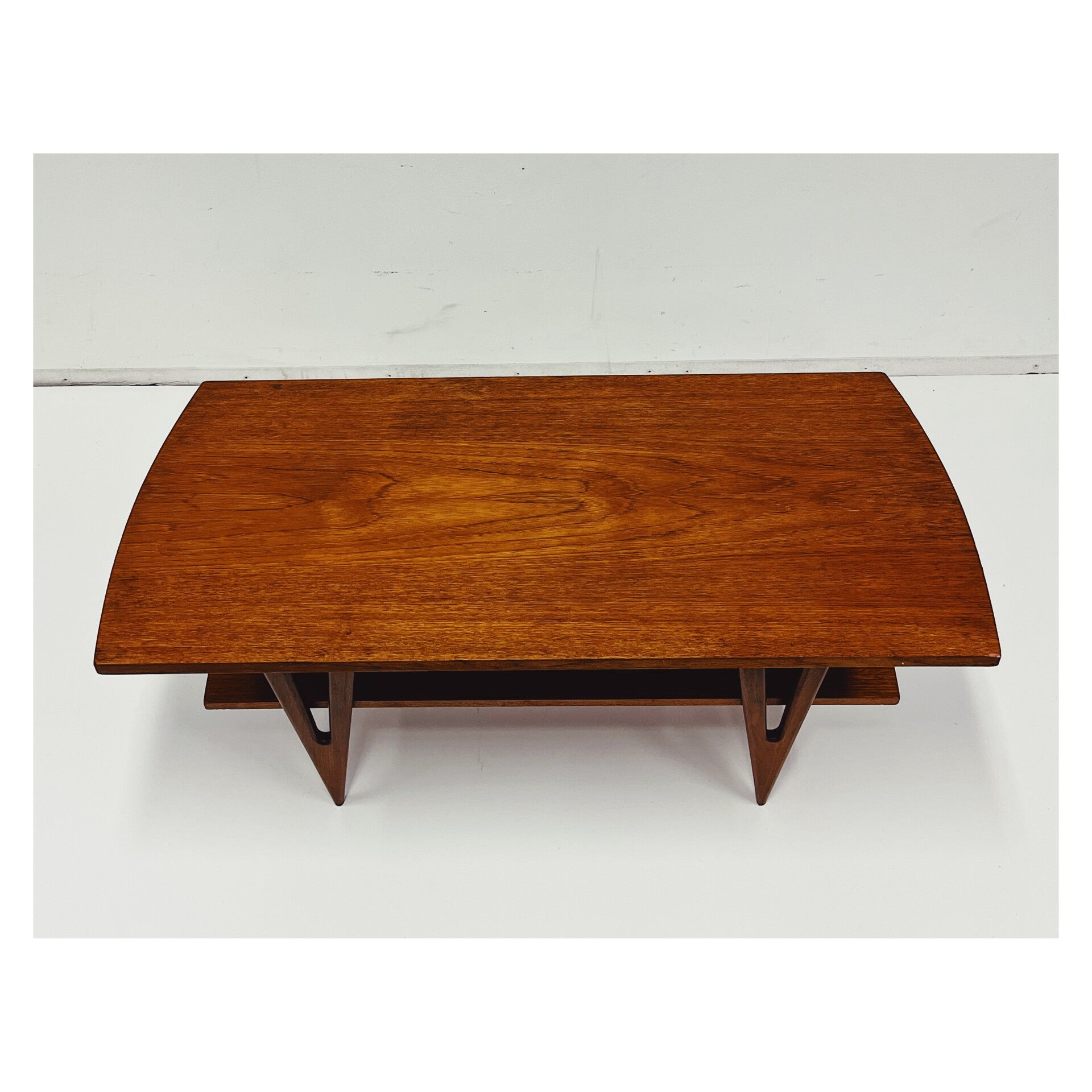 Vintage Deense salontafel mid-century. De salontafel verkeert in zeer goede conditie en heeft een unieke vormgeving.