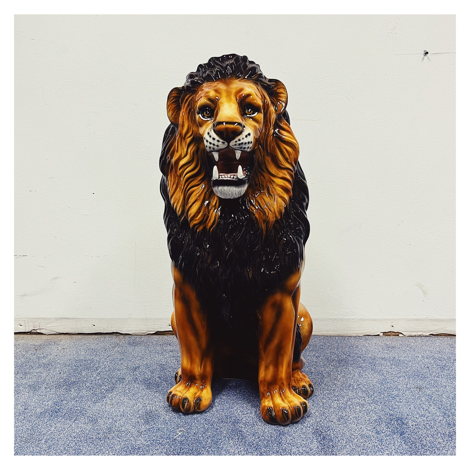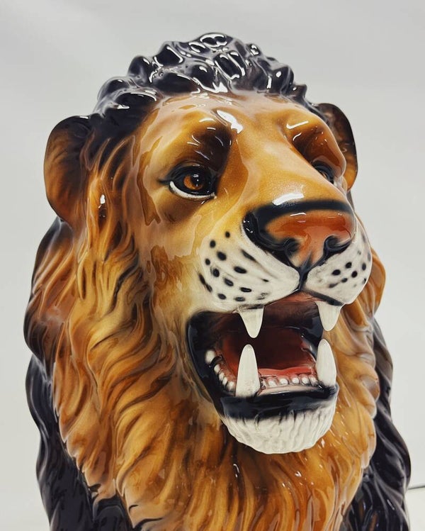 Uniek handgemaakt beeld van een leeuw. Dit Hollywood Regency beeld, vervaardigd van met de hand beschilderd keramiek en gemaakt in Italië, zal ongetwijfeld een verbluffende en stoere uitstraling aan je interieur toevoegen!