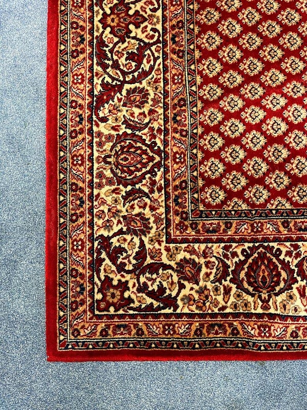 Machinaal Oosters kleed in de kleur rood. Het kleed is erg groot en perfect voor evenementen. De huurpijs is per gebruiksdag.Afmetingen350 x 250 cm