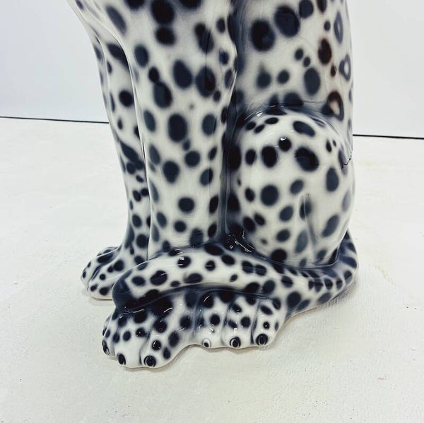Uniek handgemaakt beeld van een sneeuwluipaard. Dit Hollywood Regency beeld, vervaardigd van met de hand beschilderd keramiek en gemaakt in Italië, zal ongetwijfeld een verbluffende en stoere uitstraling aan je interieur toevoegen!