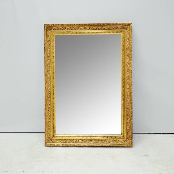 Deze mooie gouden vintage spiegel met een robuuste gouden lijst is een echte aanwinst voor je interieur. De gouden vierkante lijst heeft een bijzonder decoratief patroon. De spiegel is in goede vintage staat en heeft een ophangsysteem aan de achterzijde.