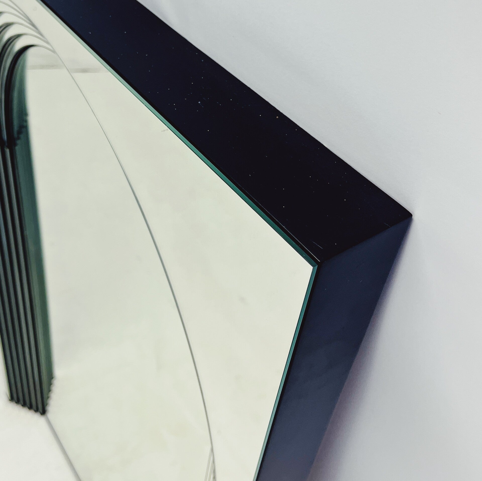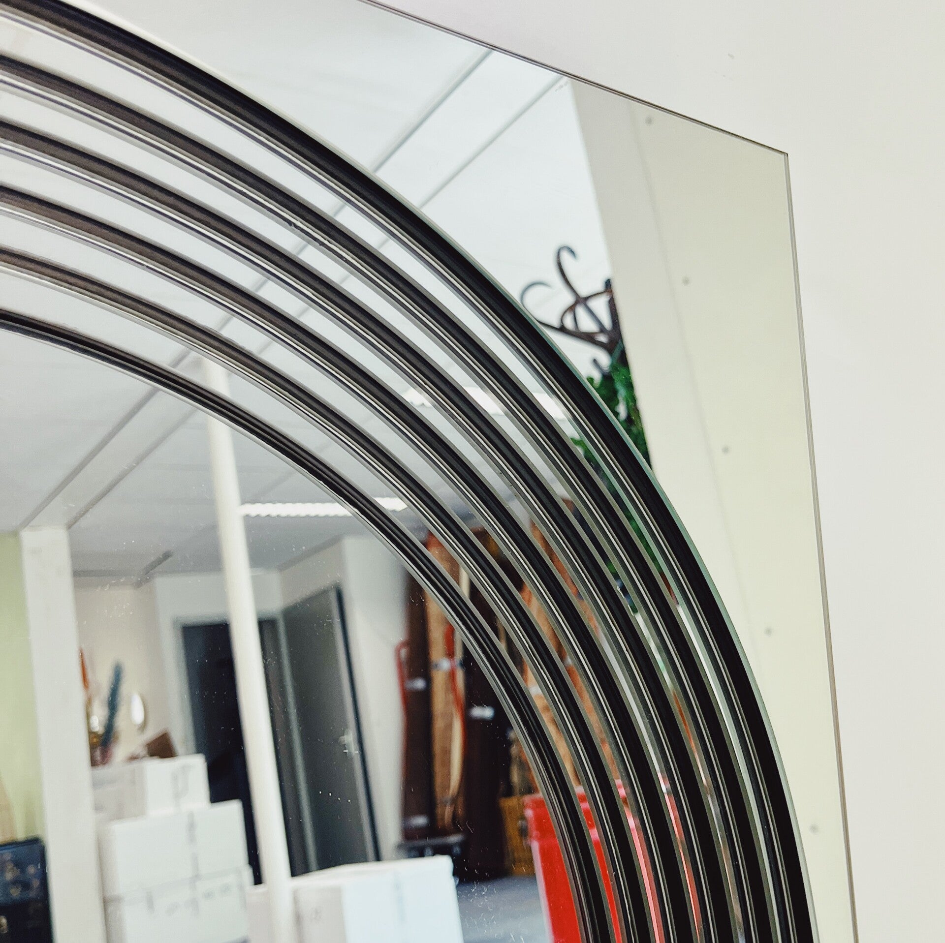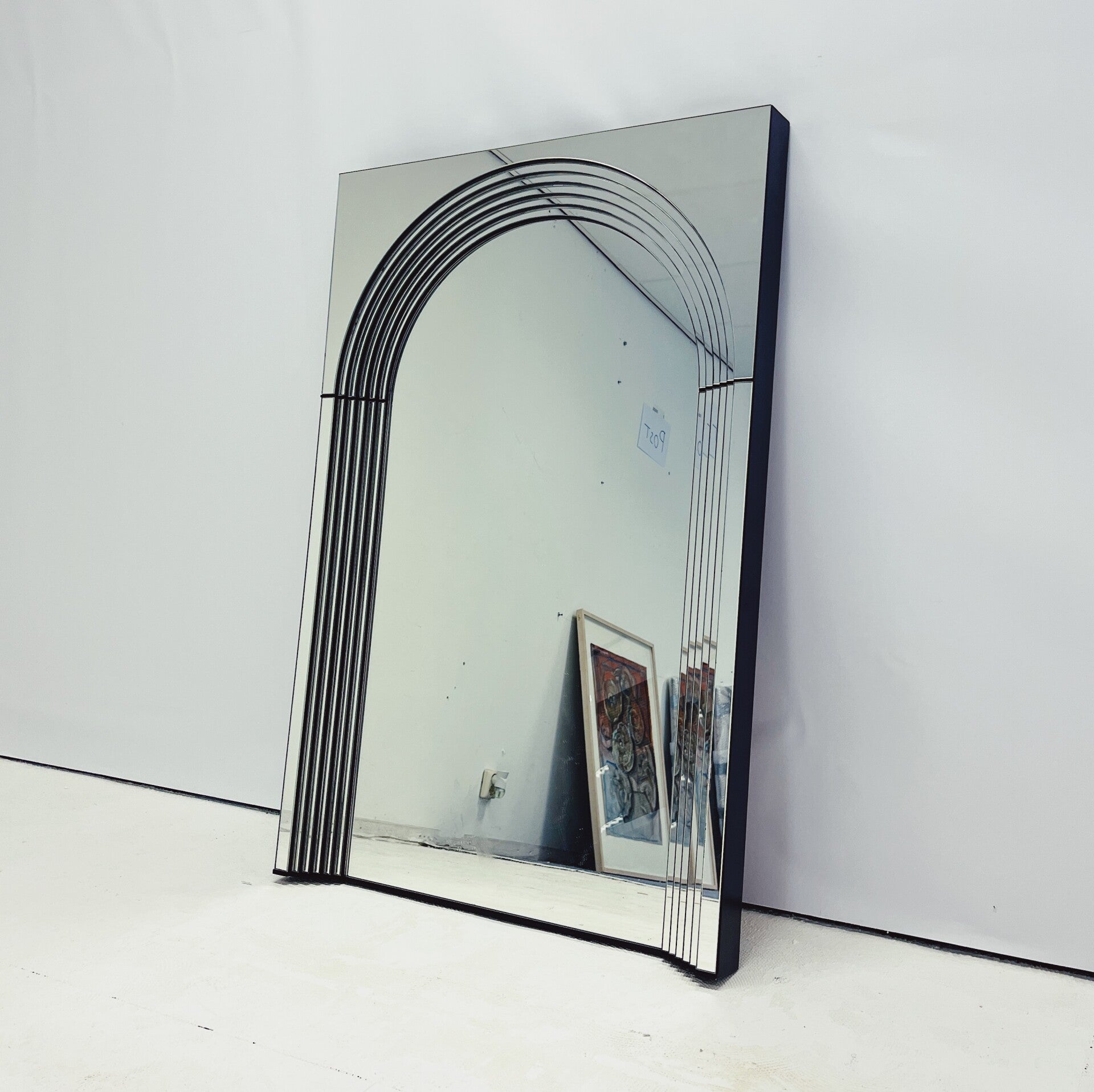 Dit vintage model verkeert in uitstekende staat en past perfect in de Hollywood Regency stijl. De spiegel heeft een stevig ophangsysteem en is gemerkt aan de achterzijde.