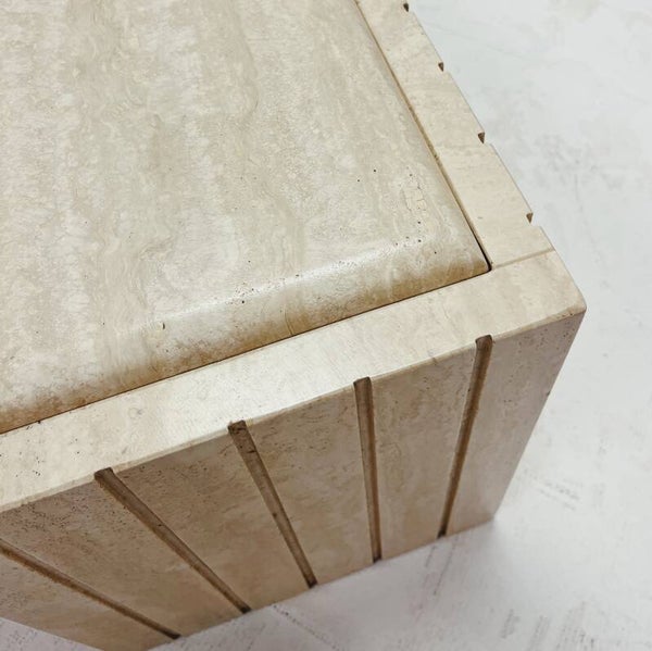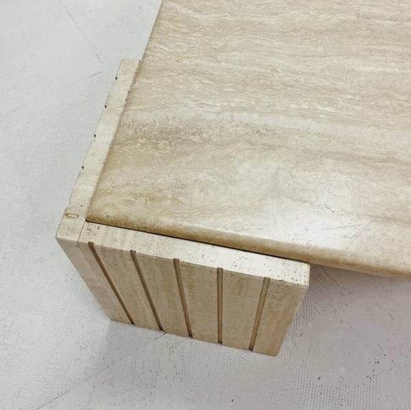 Vintage salontafel 'Teardrop' gemaakt in Italië. De tafel is gemaakt van travertijn steen en heeft een mooie wit / crème achtige kleur. De grote salontafel heeft een prachtige druppelvorm en wordt de eye catcher in je huis! Los van wat kleine krasjes en plekjes is de tafel in goede staat!