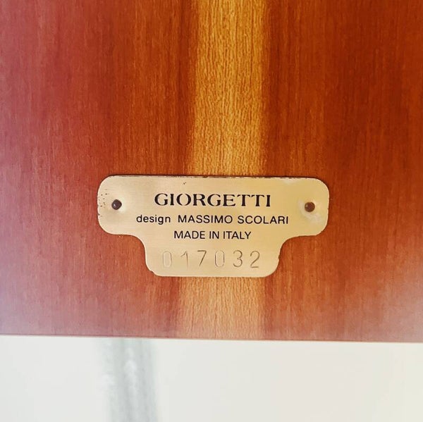 Dit unieke bureau, ontworpen door Massimo Scolari voor het Italiaanse merk Giorgetti, is een prachtig voorbeeld van Italiaans vakmanschap en design. De onderkant is gemerkt met "Giorgetti design Massimo Scolari made in Italy 017032," wat de authenticiteit en exclusiviteit van dit stuk bevestigt.