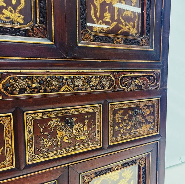 Antieke Chinese Kast met Gouden Decoraties