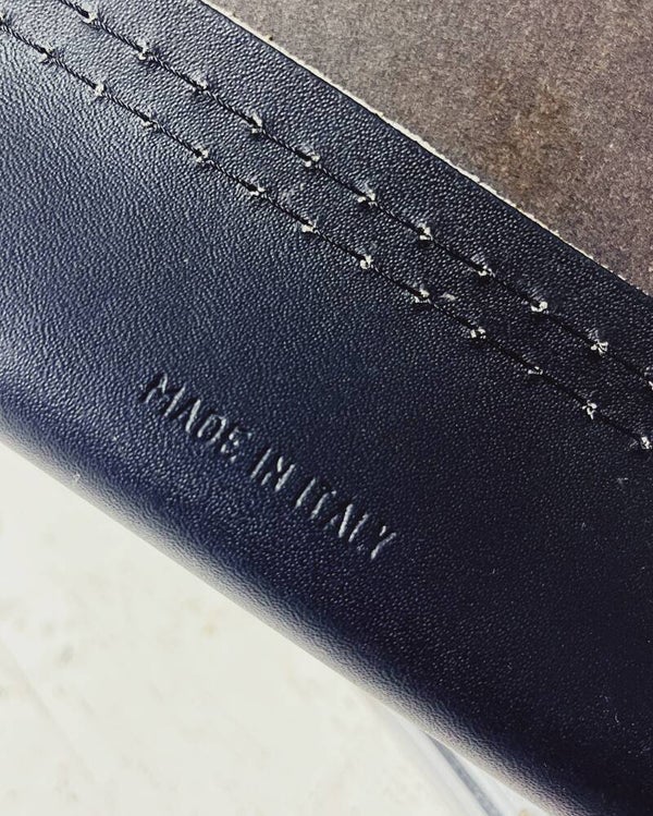 Set van vier Italiaanse designstoelen. Deze stoelen zijn vervaardigd uit chroom en kunstleer en gemerkt aan de onderzijde met "Made in Italy". Het strakke, retro-ontwerp sluit perfect aan bij een industrieel interieur of een ruimte met een vintage of retro-uitstraling.