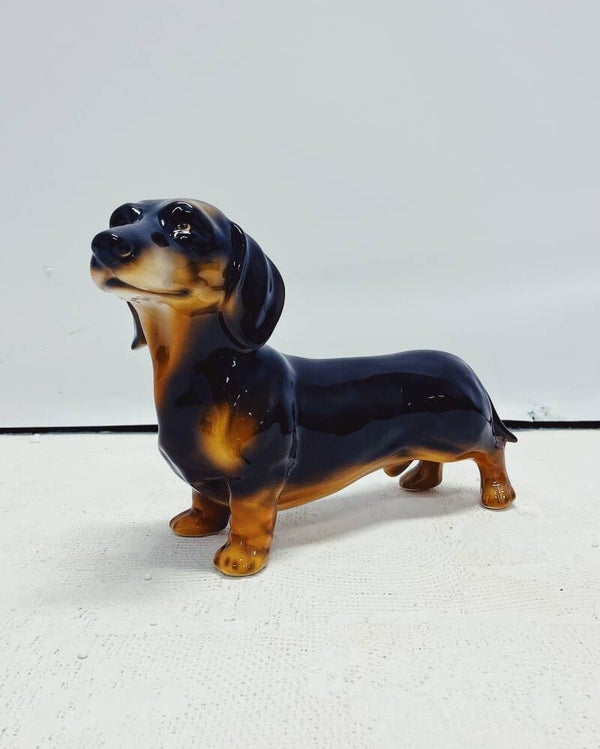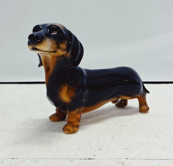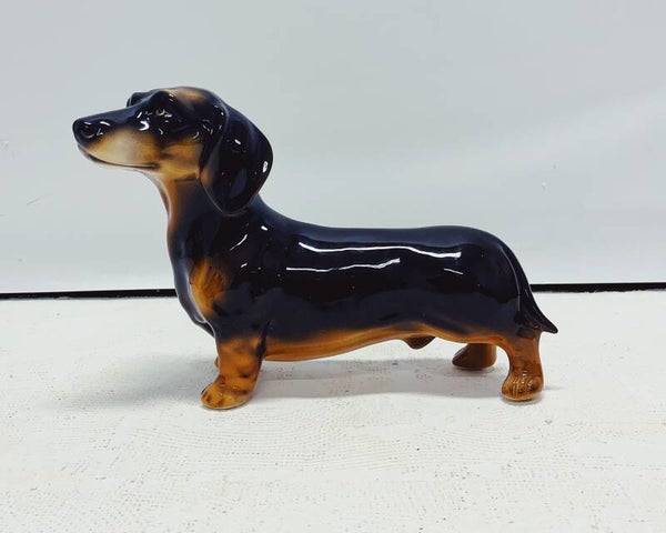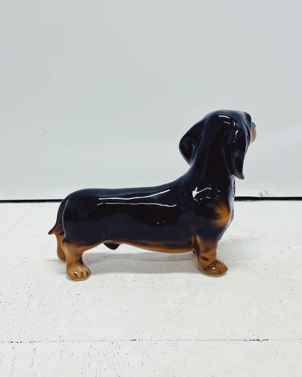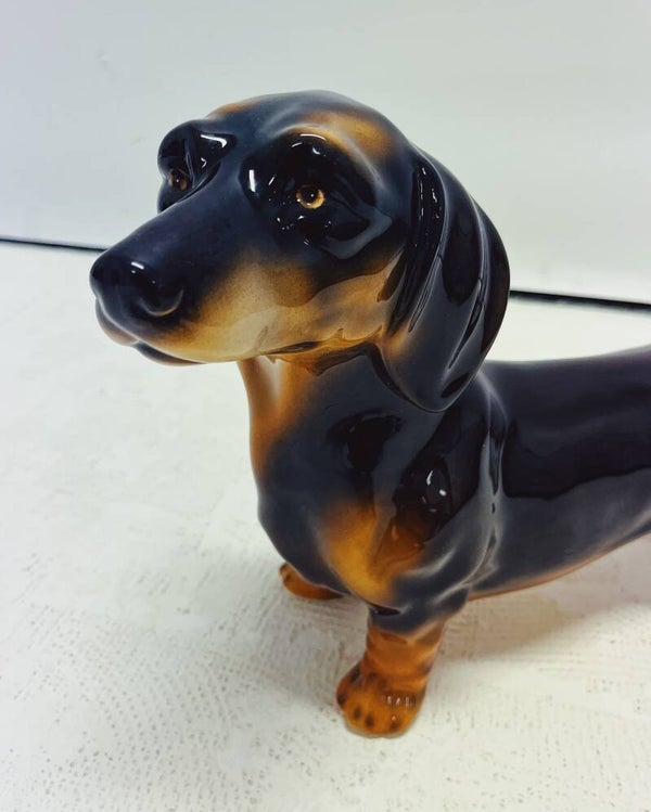 Uniek handgemaakt beeld van een tekkel. Dit Hollywood Regency beeld, vervaardigd van met de hand beschilderd keramiek en gemaakt in Italië, zal ongetwijfeld een verbluffende en stoere uitstraling aan je interieur toevoegen!