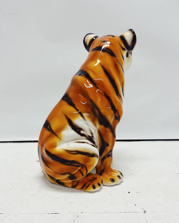 Uniek handgemaakt beeld van een tijger welp. Dit Hollywood Regency beeld, vervaardigd van met de hand beschilderd keramiek en gemaakt in Italië, zal ongetwijfeld een verbluffende en stoere uitstraling aan je interieur toevoegen!