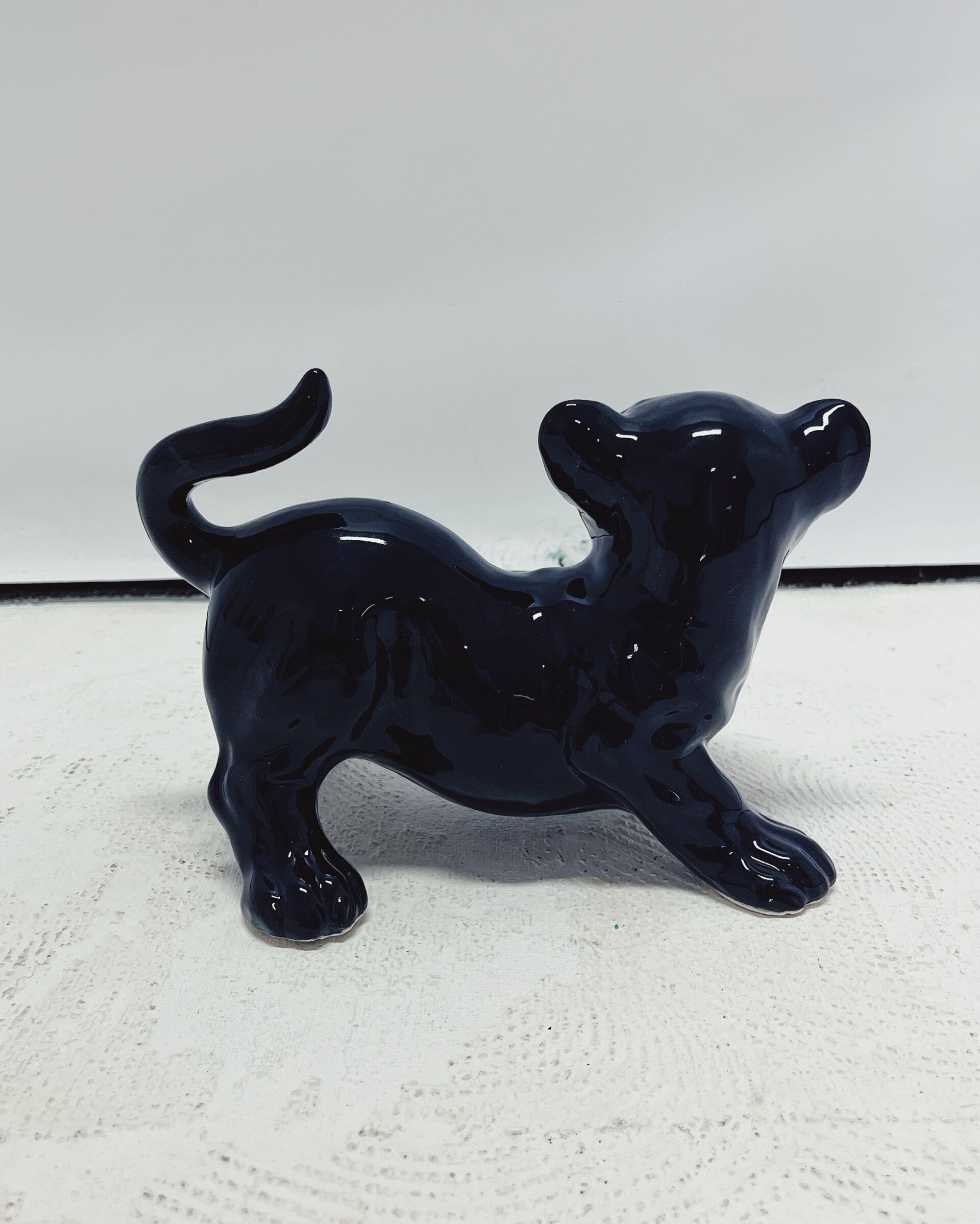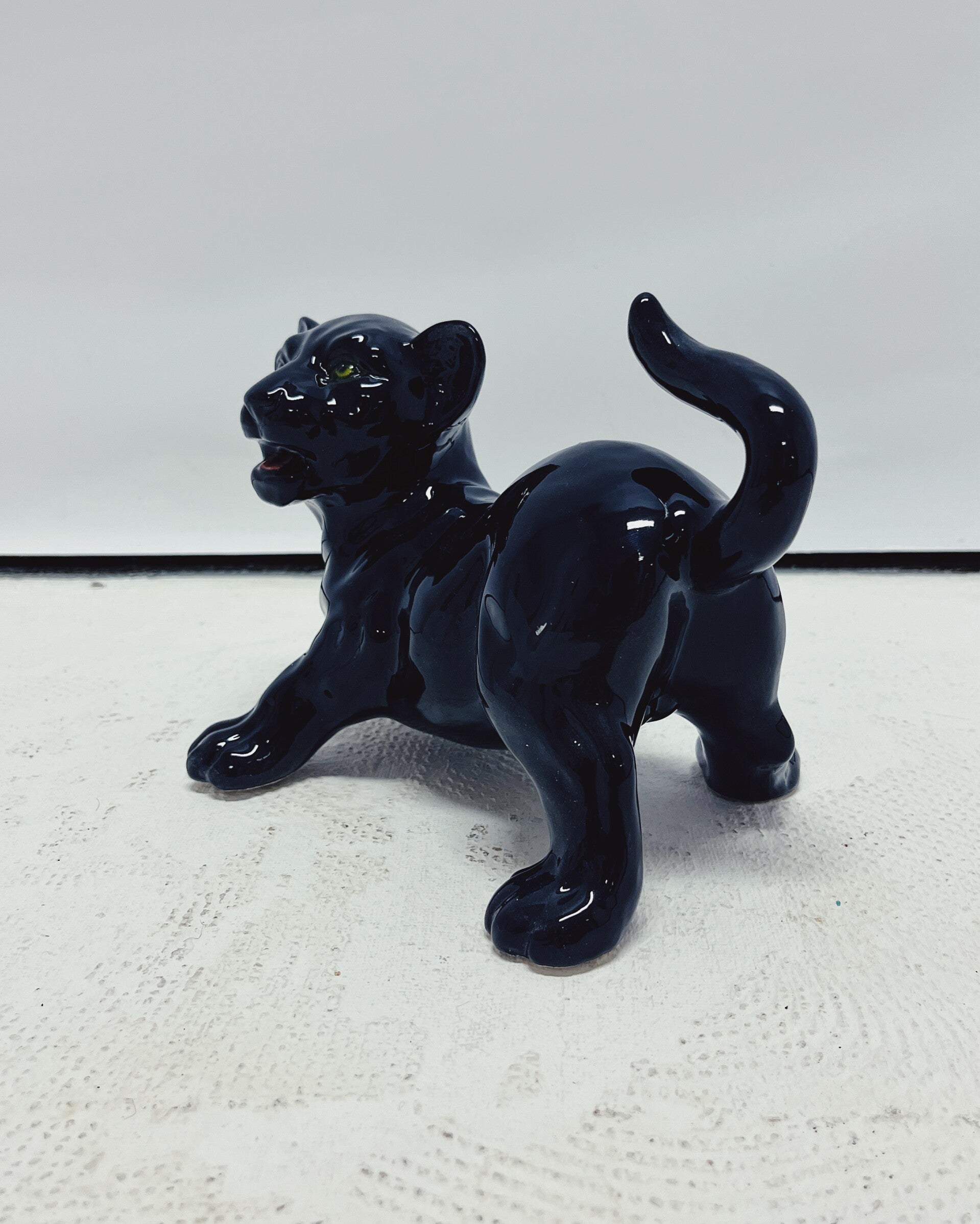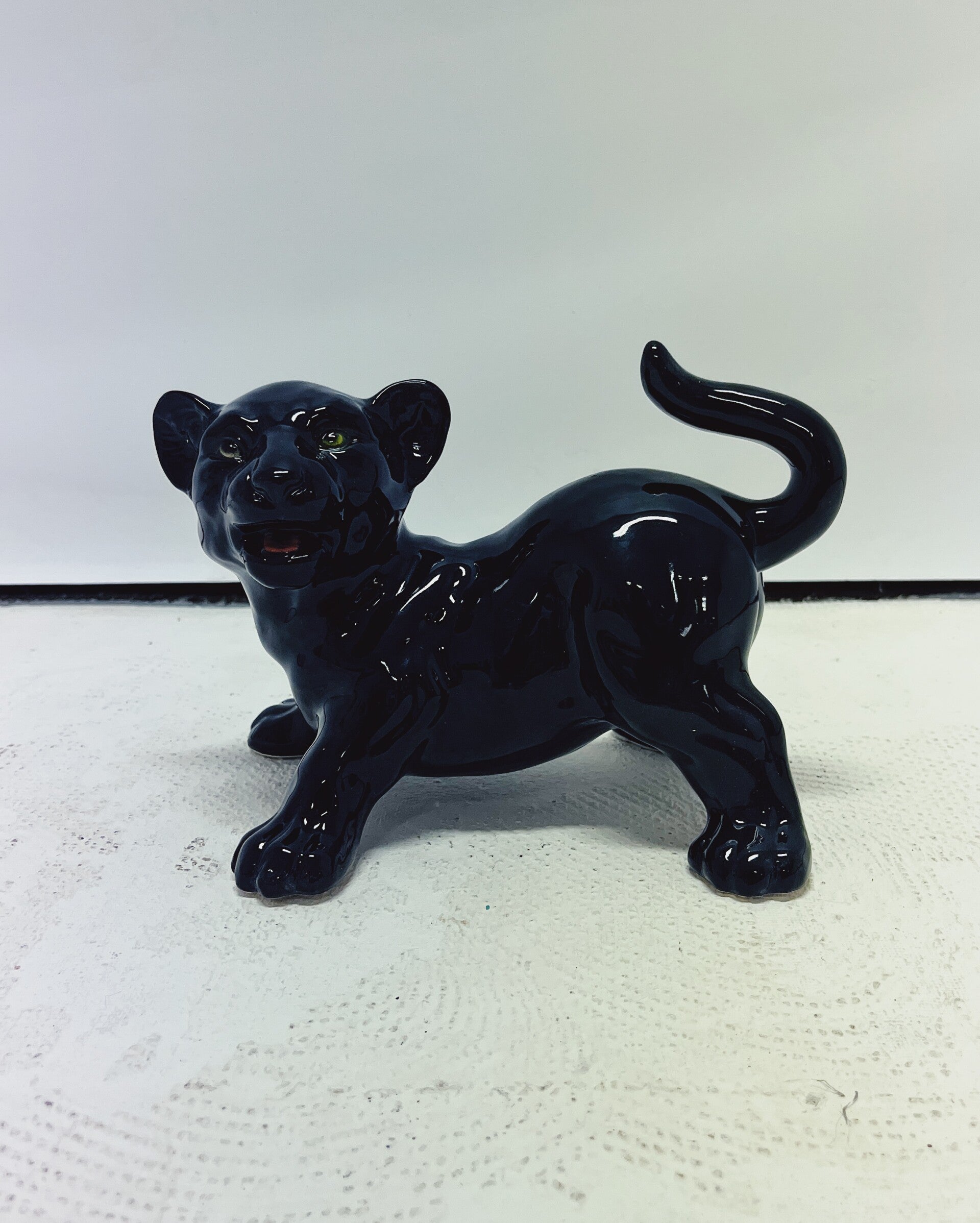 Uniek handgemaakt beeld van een panter welp. Dit Hollywood Regency beeld, vervaardigd van met de hand beschilderd keramiek en gemaakt in Italië, zal ongetwijfeld een verbluffende en stoere uitstraling aan je interieur toevoegen!