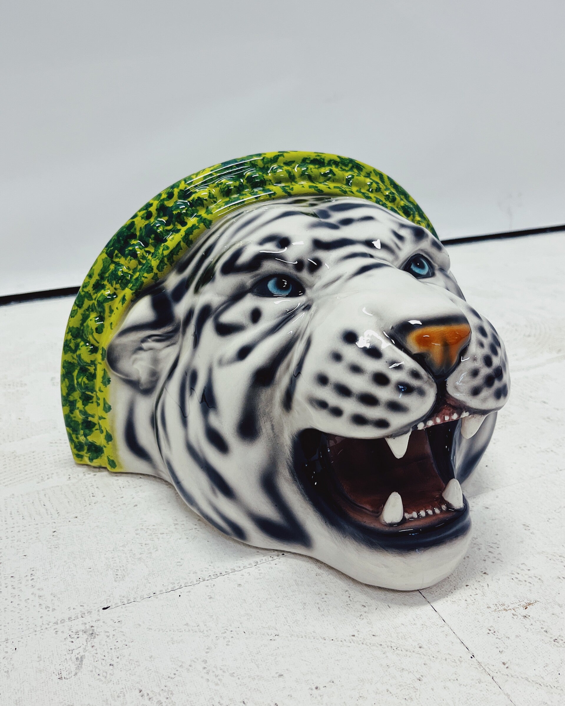 Uniek handgemaakt wandplank van een witte tijger. Dit Hollywood Regency beeld, vervaardigd van met de hand beschilderd keramiek en gemaakt in Italië, zal ongetwijfeld een verbluffende en stoere uitstraling aan je interieur toevoegen!