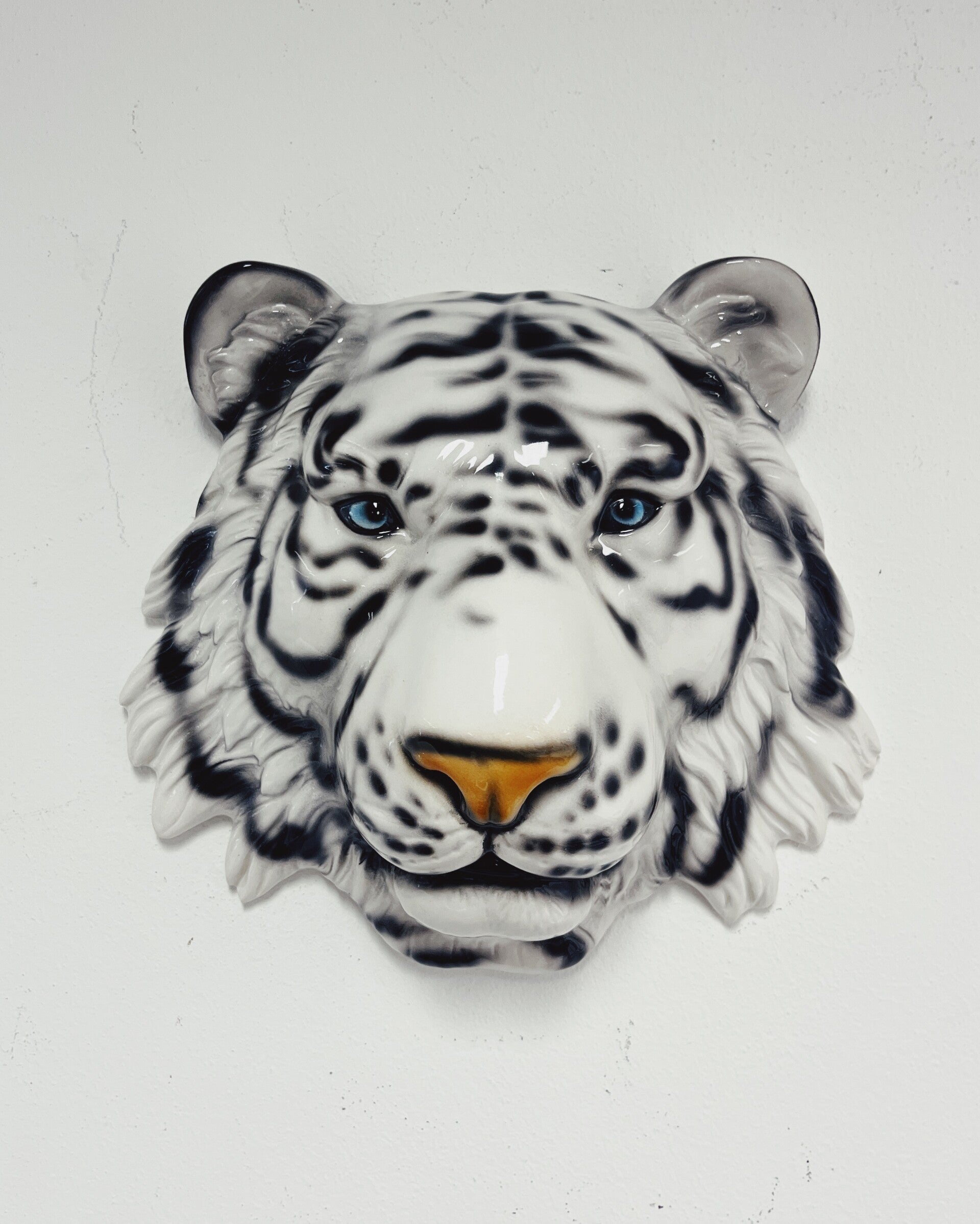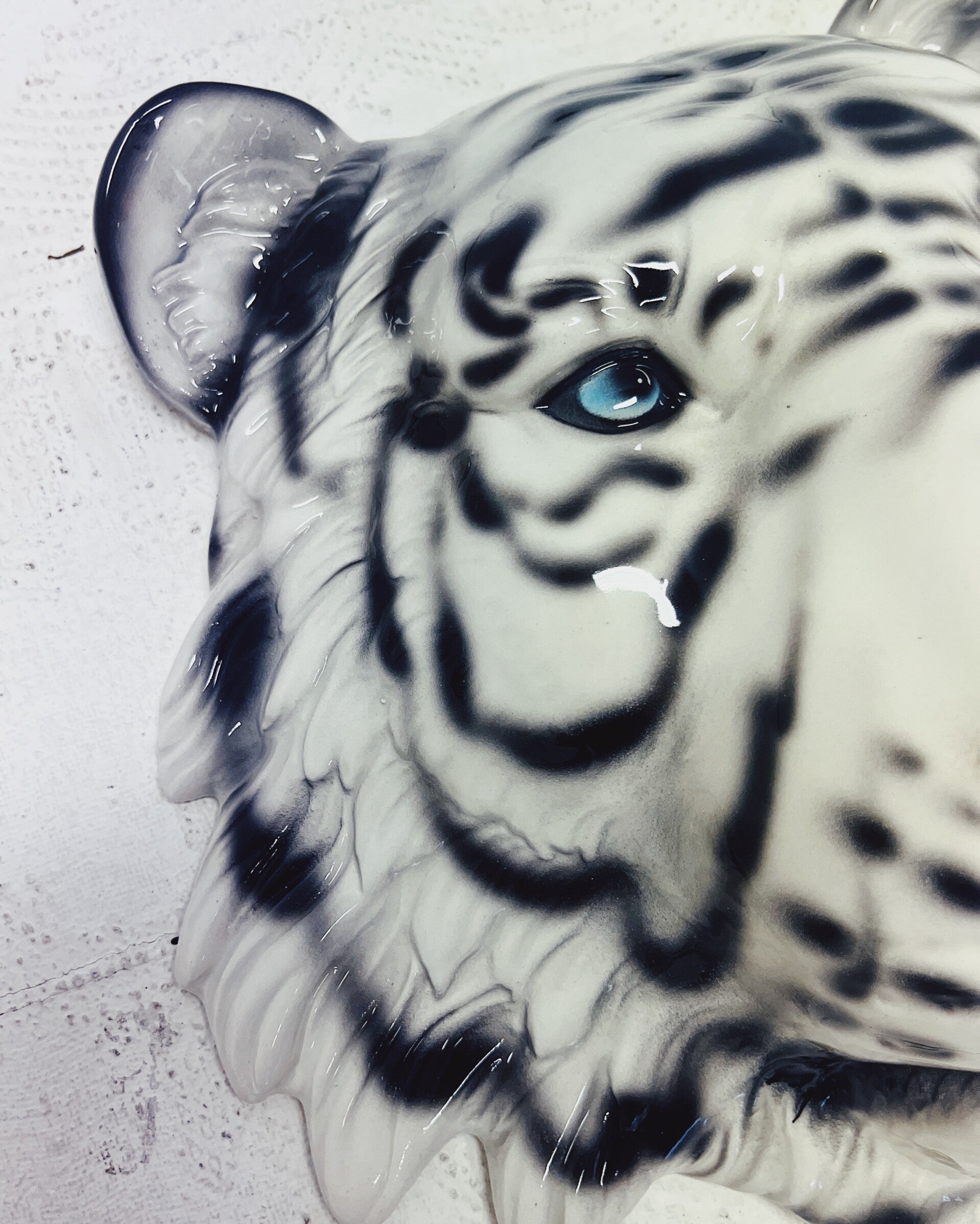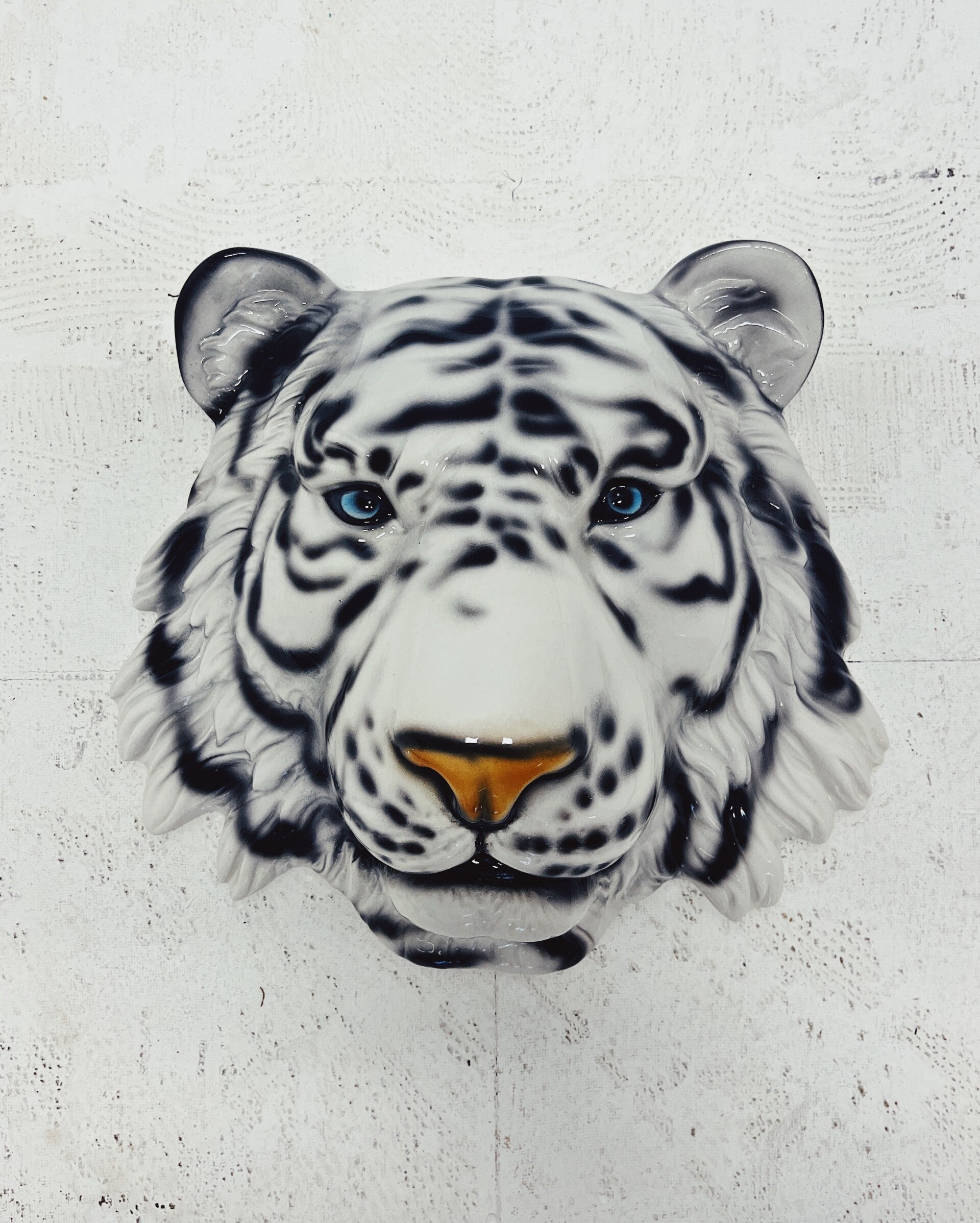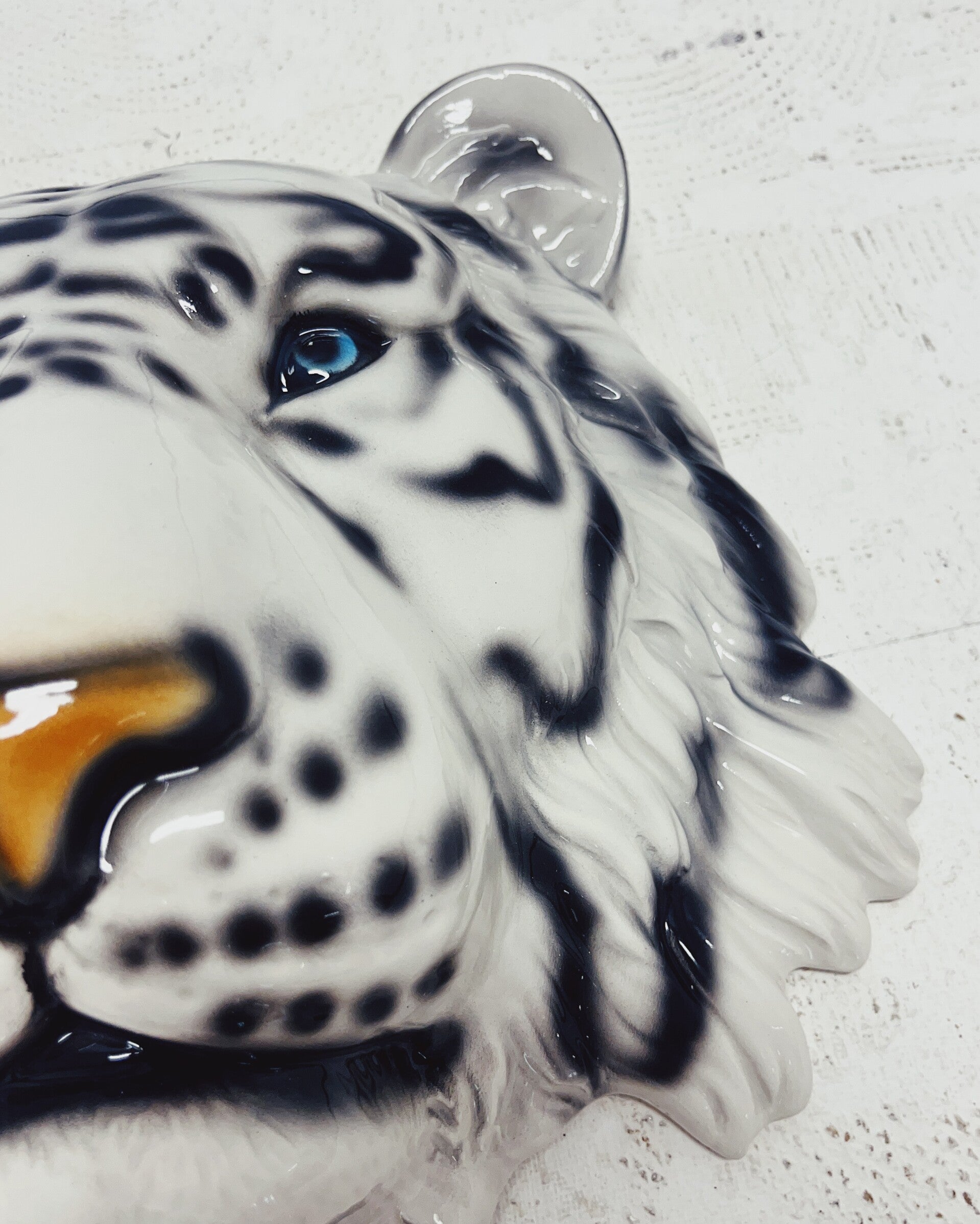 Uniek handgemaakt wandbord/masker van een witte tijger Dit Hollywood Regency beeld, vervaardigd van met de hand beschilderd keramiek en gemaakt in Italië, zal ongetwijfeld een verbluffende en stoere uitstraling aan je interieur toevoegen!