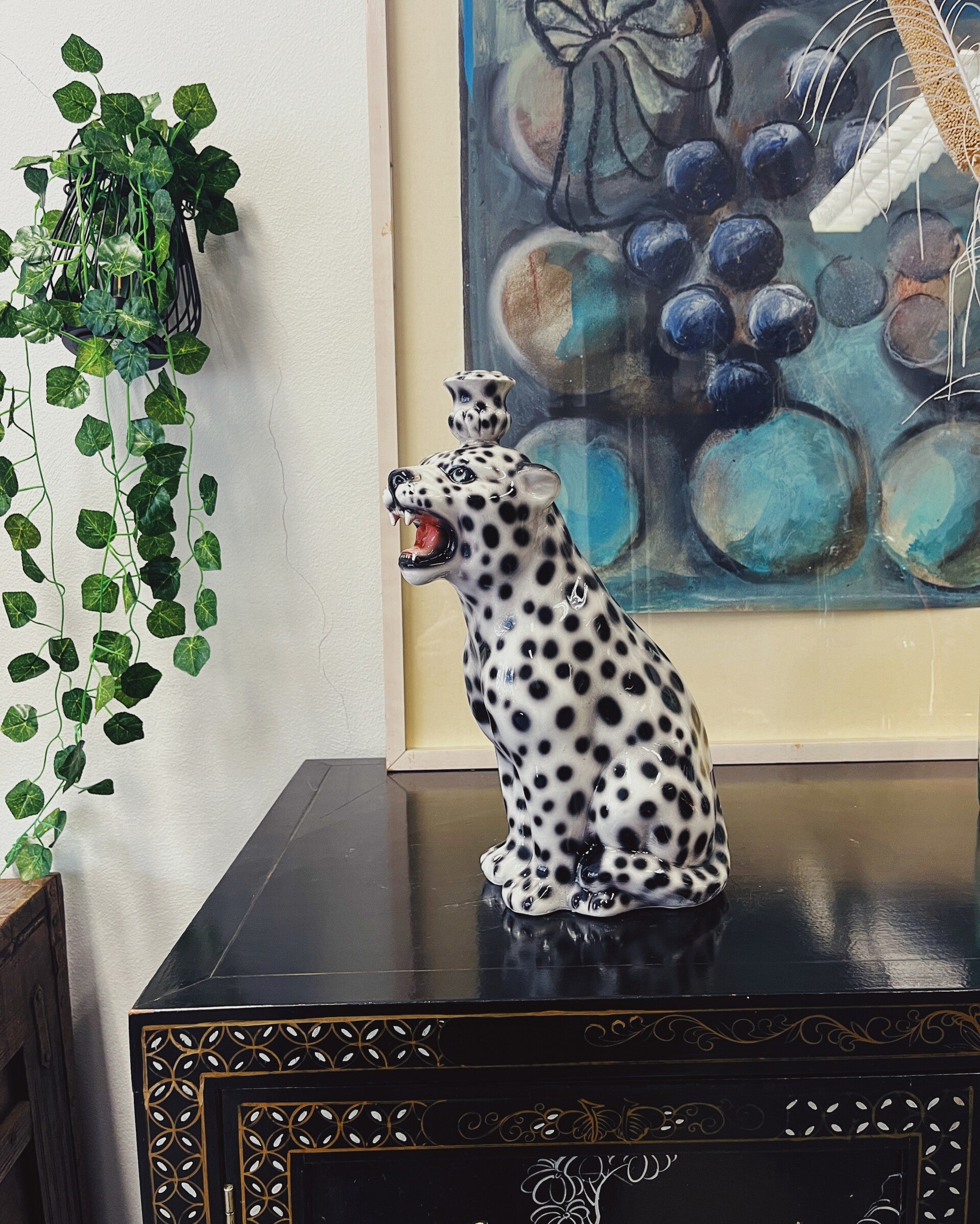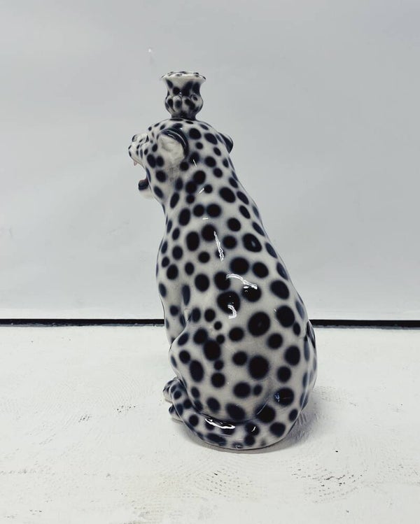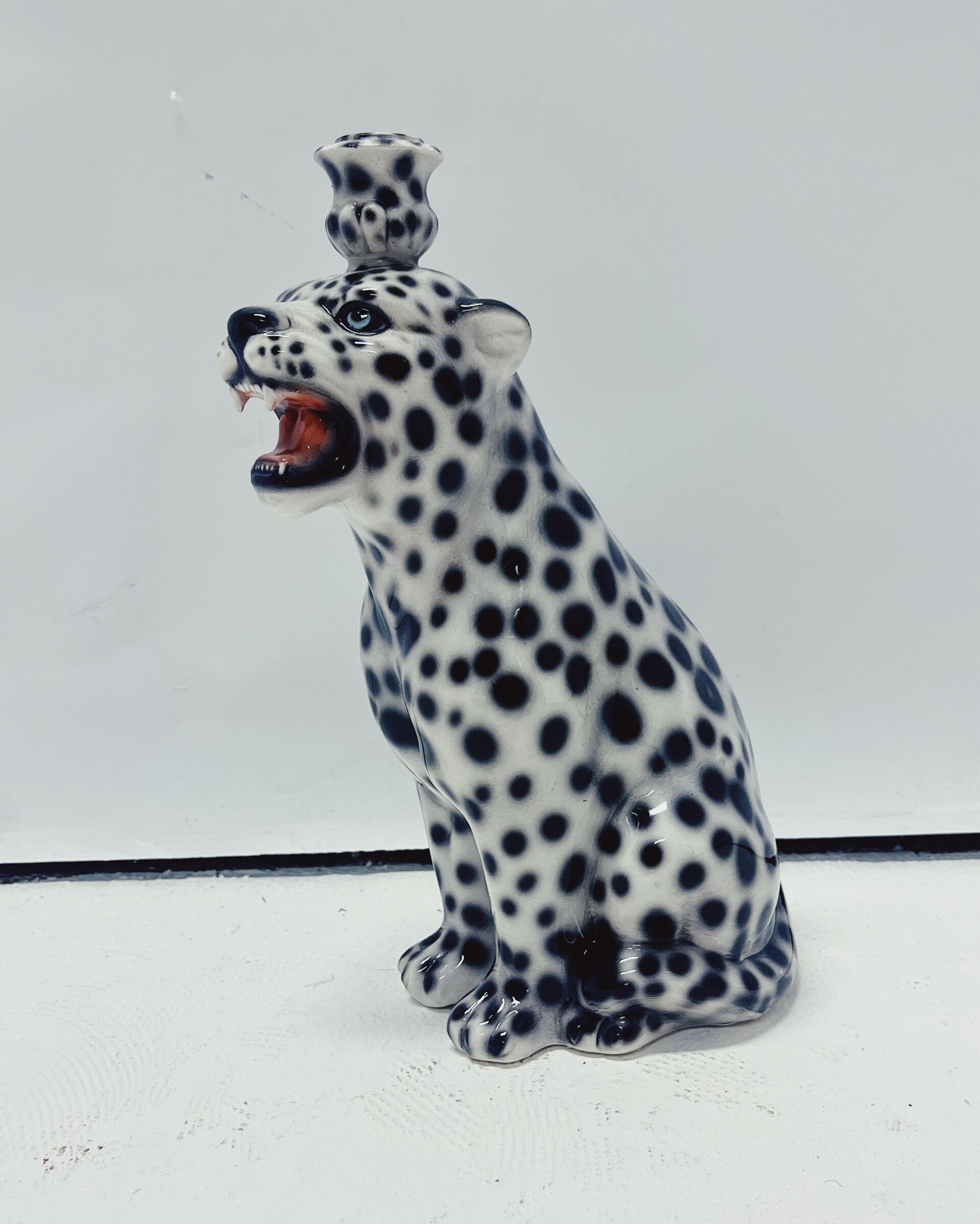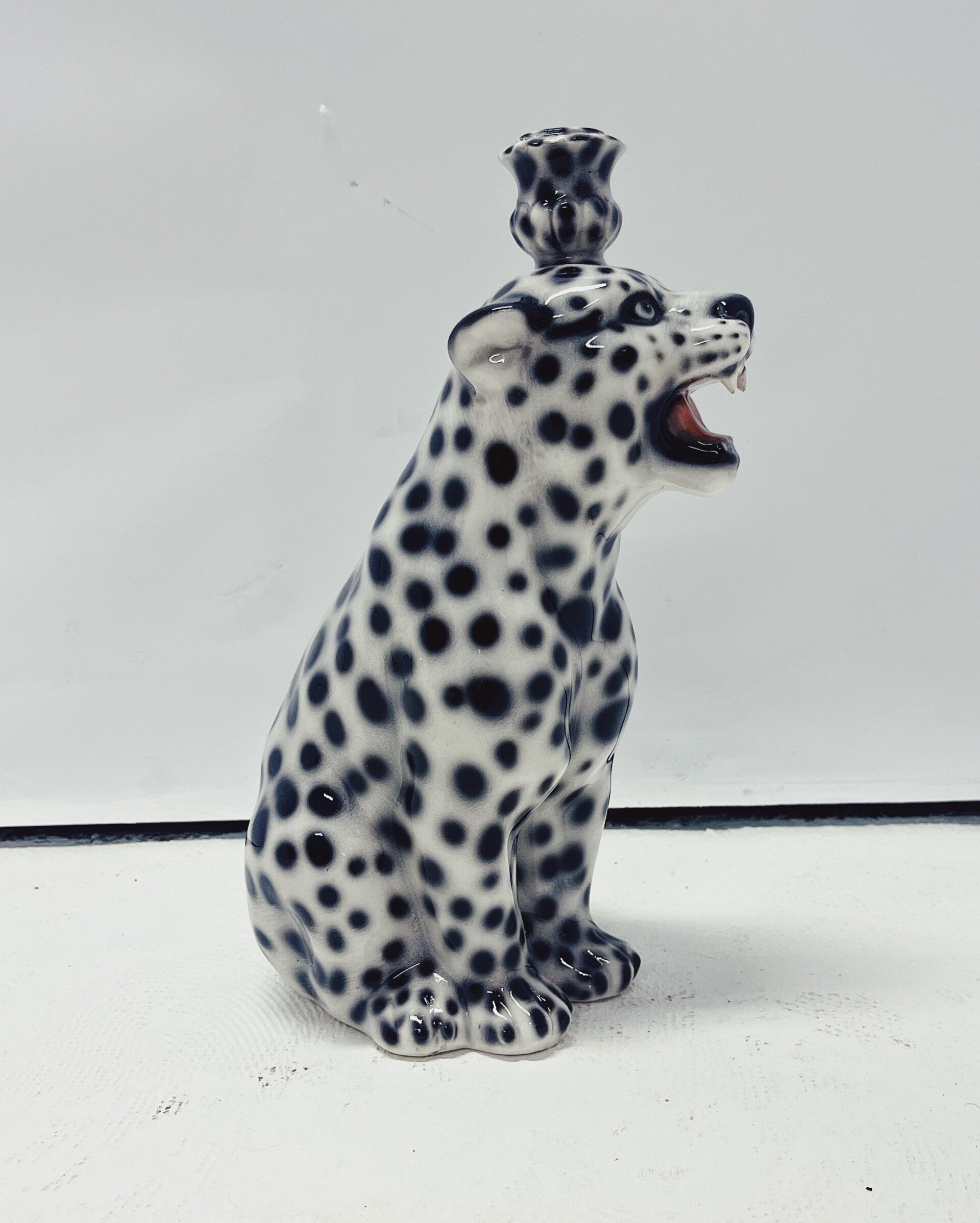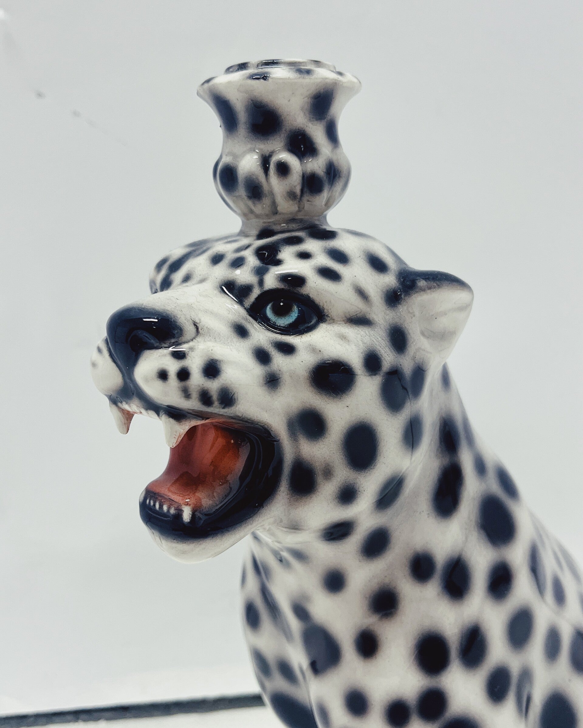 Unieke, handgemaakte kandelaar in de vorm van een wit lui.paard Dit Hollywood Regency-beeld, vervaardigd van met de hand beschilderd keramiek en gemaakt in Italië, voegt ongetwijfeld een verbluffende en stoere uitstraling toe aan je interieur!