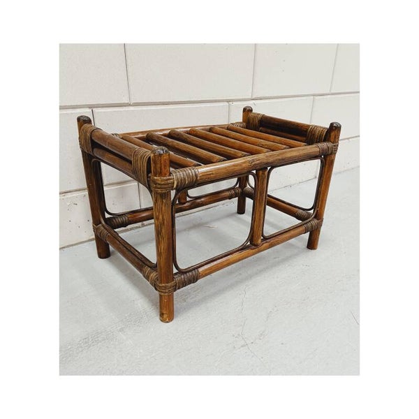 Dit vintage rotan krukje is een echte sfeermaker voor je interieur. Het krukje is ideaal om een gezellig plekje te creëren. Het is inzetbaar als voetenbank, krukje of plantentafeltje. Dit meubel is in hele goede conditie en ook verkrijgbaar met een bijpassend kussentje.