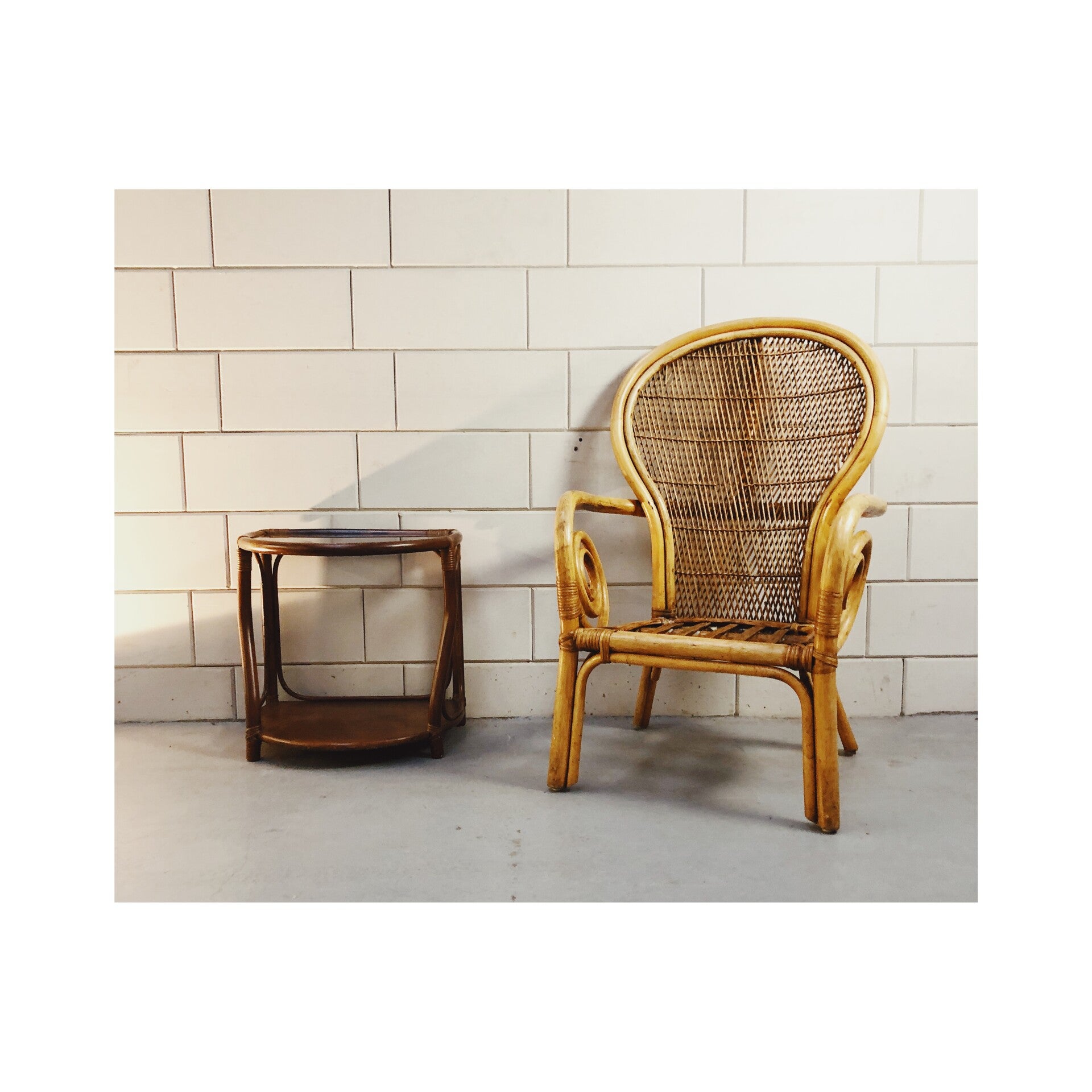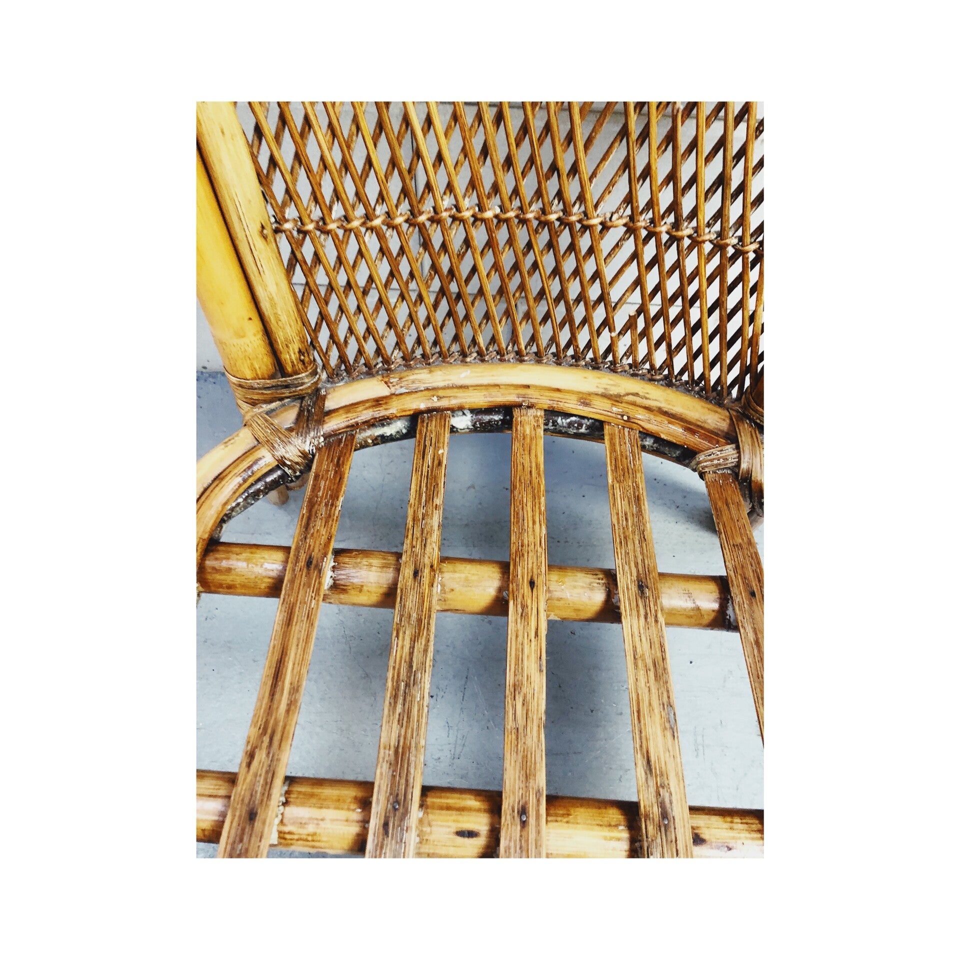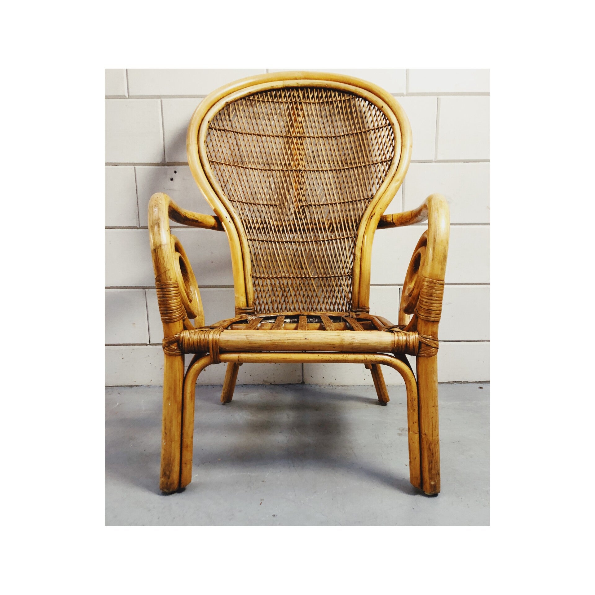 Deze stoel brengt de warmere sferen weer in huis. Met het gevlochten rugvlak de gekrulde armleuningen en het gespijlde zitvlak brengt deze stoel de boho trend tot zijn recht. De stoel heeft wel wat zichtbare gebruikssporen doordat het meubel waarschijnlijk buiten heeft gestaan. Wel is de stoel nog zeker klaar voor een volgende ronde.