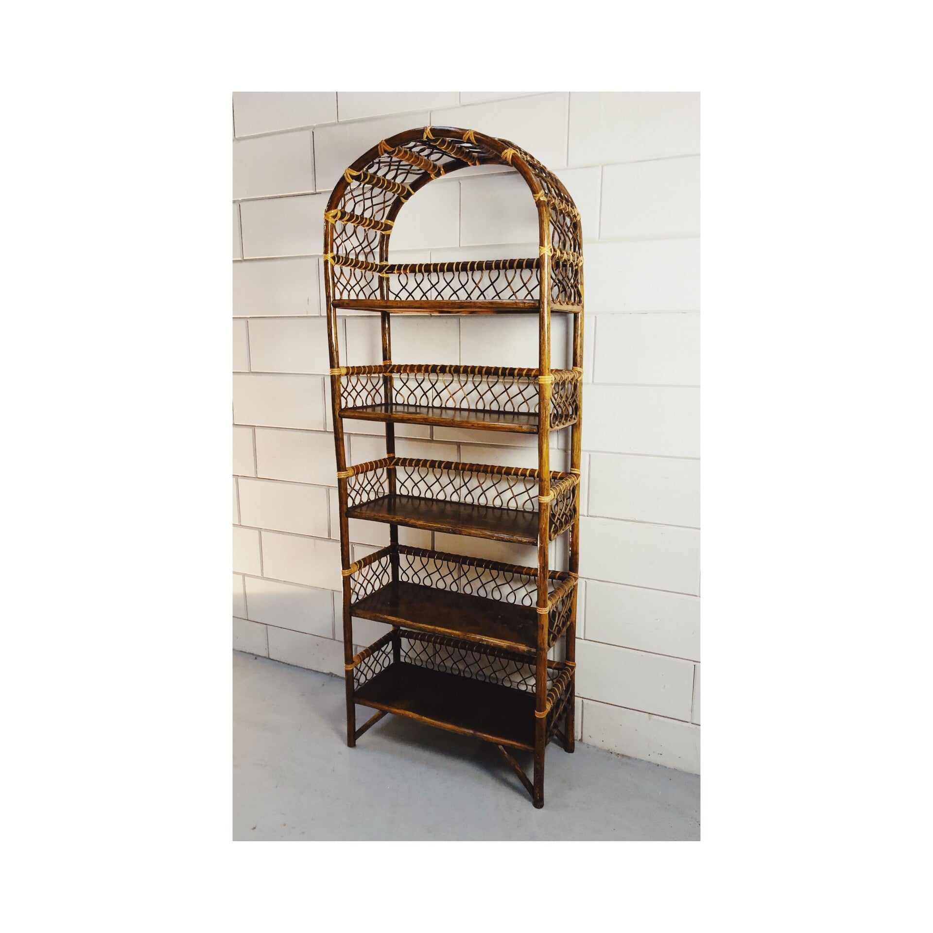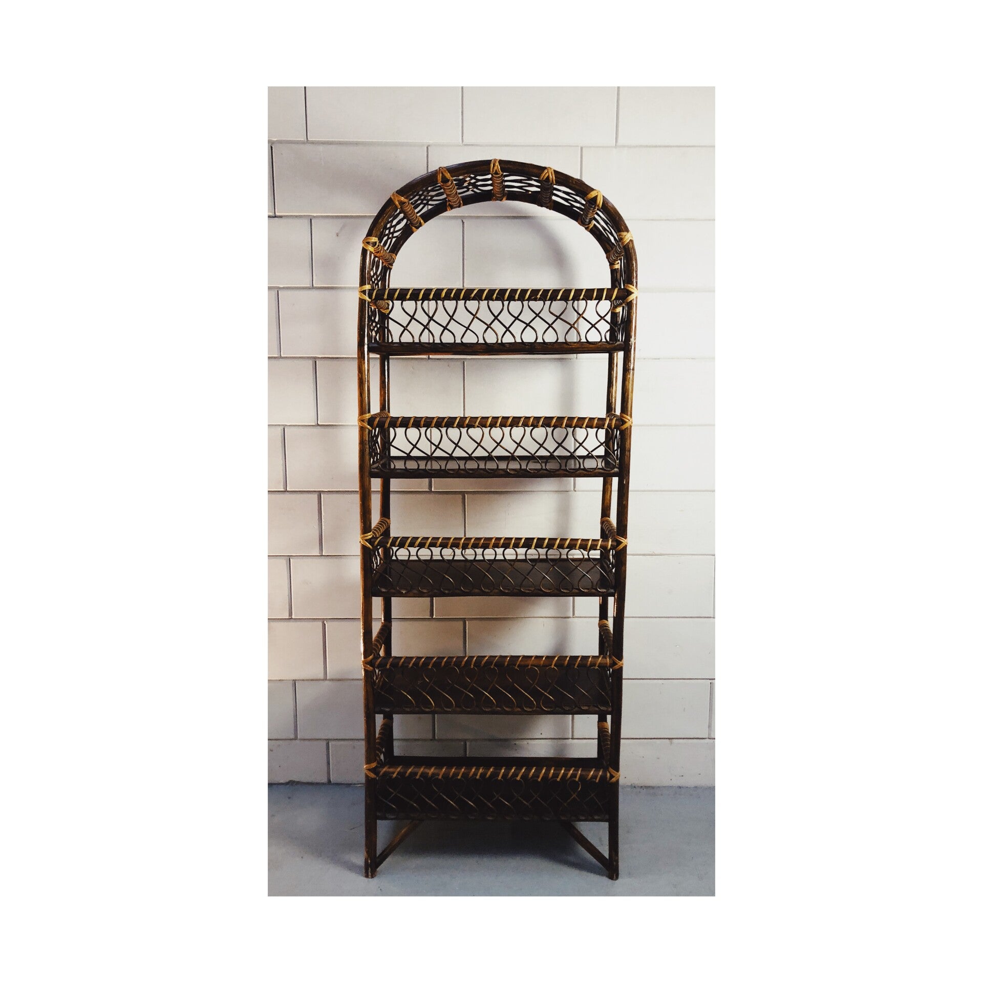 Deze prachtige boho wandkast is ideaal als boekenkast versierd met leuke plantjes. De kast heeft 5 opbergplanken die elk versierd zijn met een prachtig rieten ornament. Door het dunne postuur ideaal als opbergkast in de wat kleinere ruimtes. De kast is in goede vintage conditie en echt een prachtig item voor in huis.