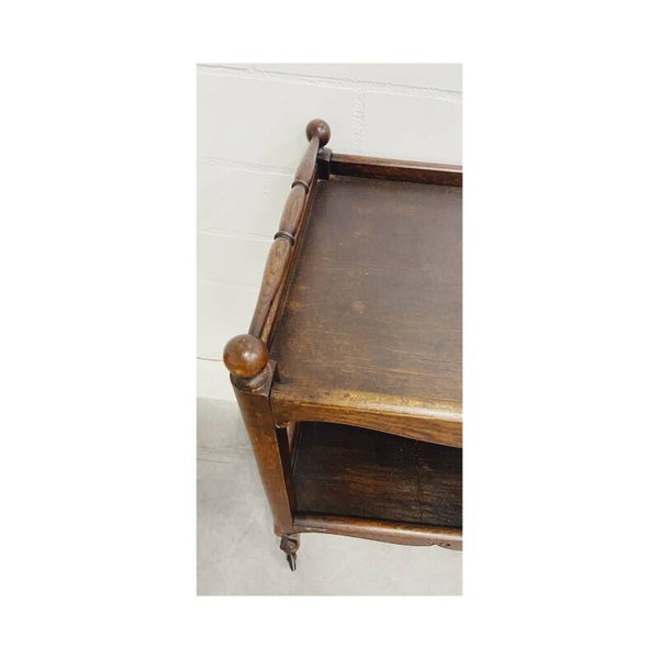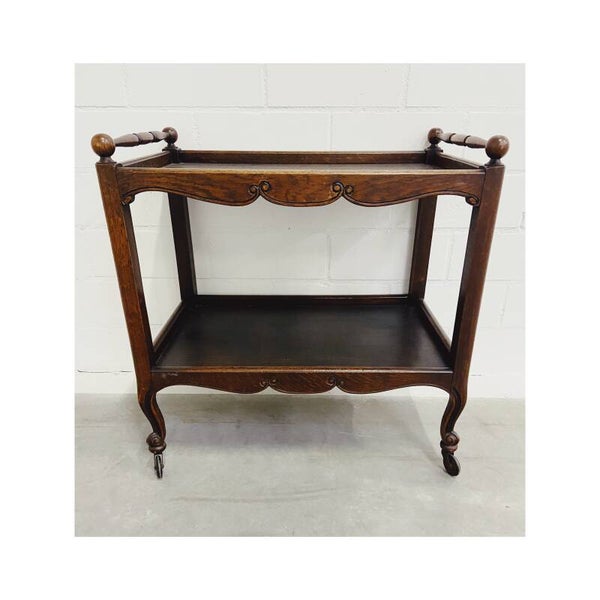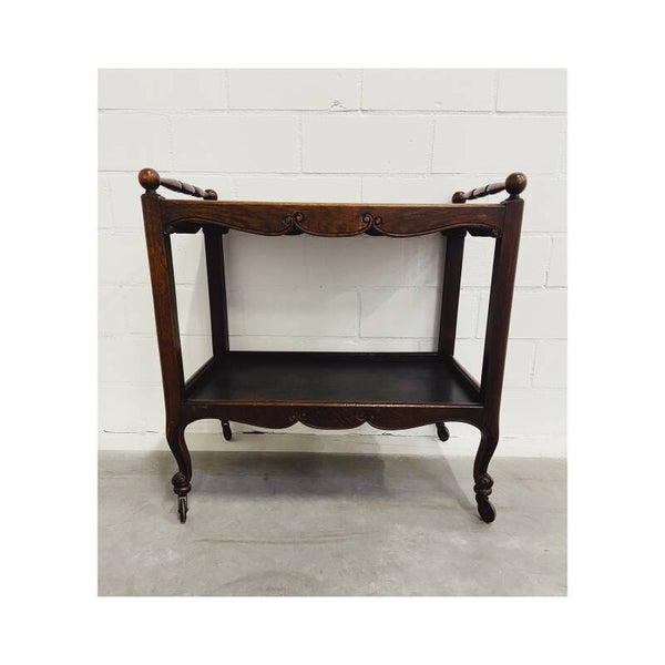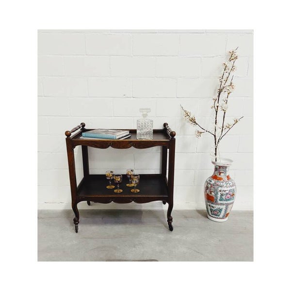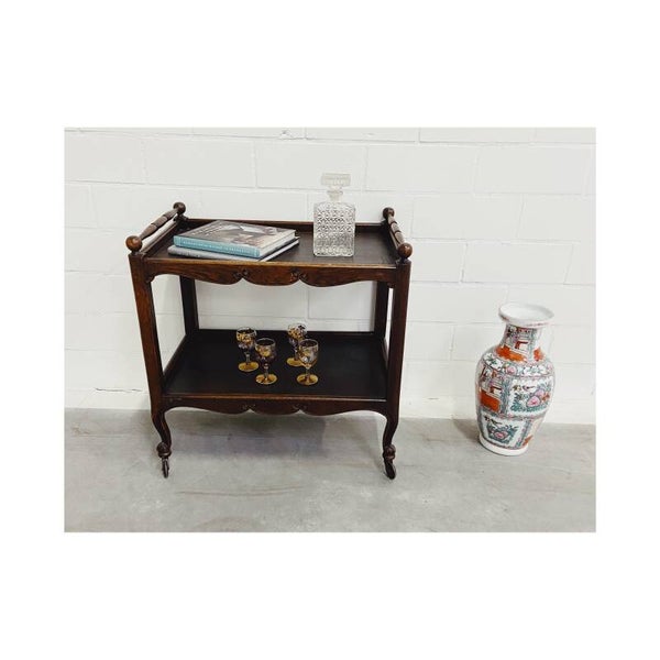 Hoe mooi is deze bijzondere houten bar cart! De trolley is erg handig voor het serveren van zowel eten als drinken en dit allemaal met een prachtig design. De bar cart is in een goede vintage staat!