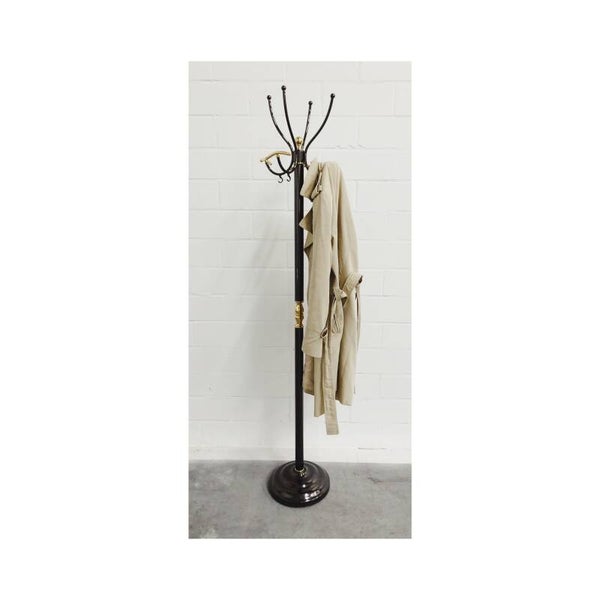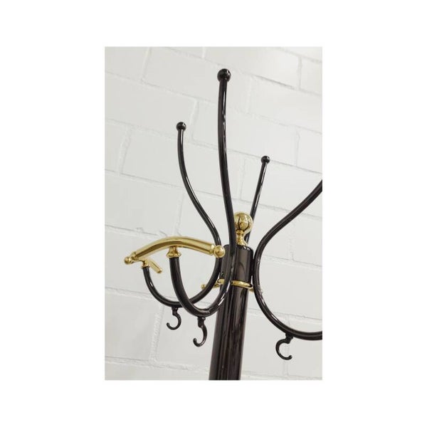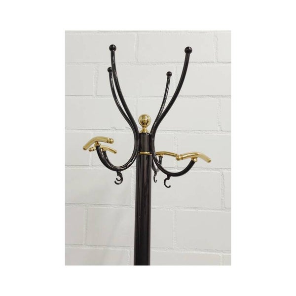 Extravagante kapstok van zilver messing met gouden details. De kapstok is prachtig vormgegeven met vier grote en vier kleine ophanghaken. De kapstok is in perfecte staat en heeft een mooie zware messing voet.