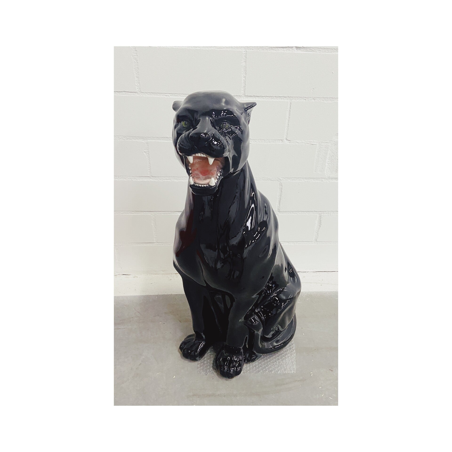Hoe gaaf is deze grote Hollywood Regency Panter! De panter is van handbeschilderd keramiek en made in Italy! Dit grote beeld zal een fantastische stoere look geven in je interieur.