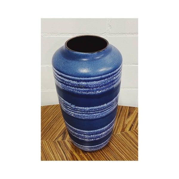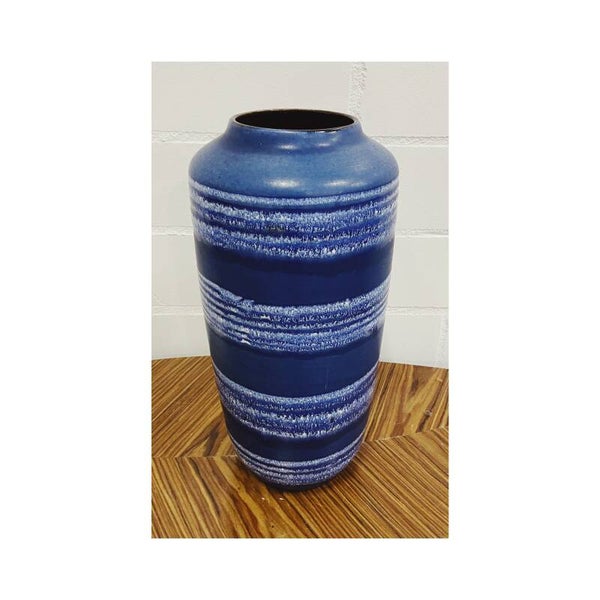 Grote blauwe West Germany vaas in uitstekende staat. Perfect om al je mooiste droogbloemen en planten in te showen. Afmetingen Hoogte: 44cm