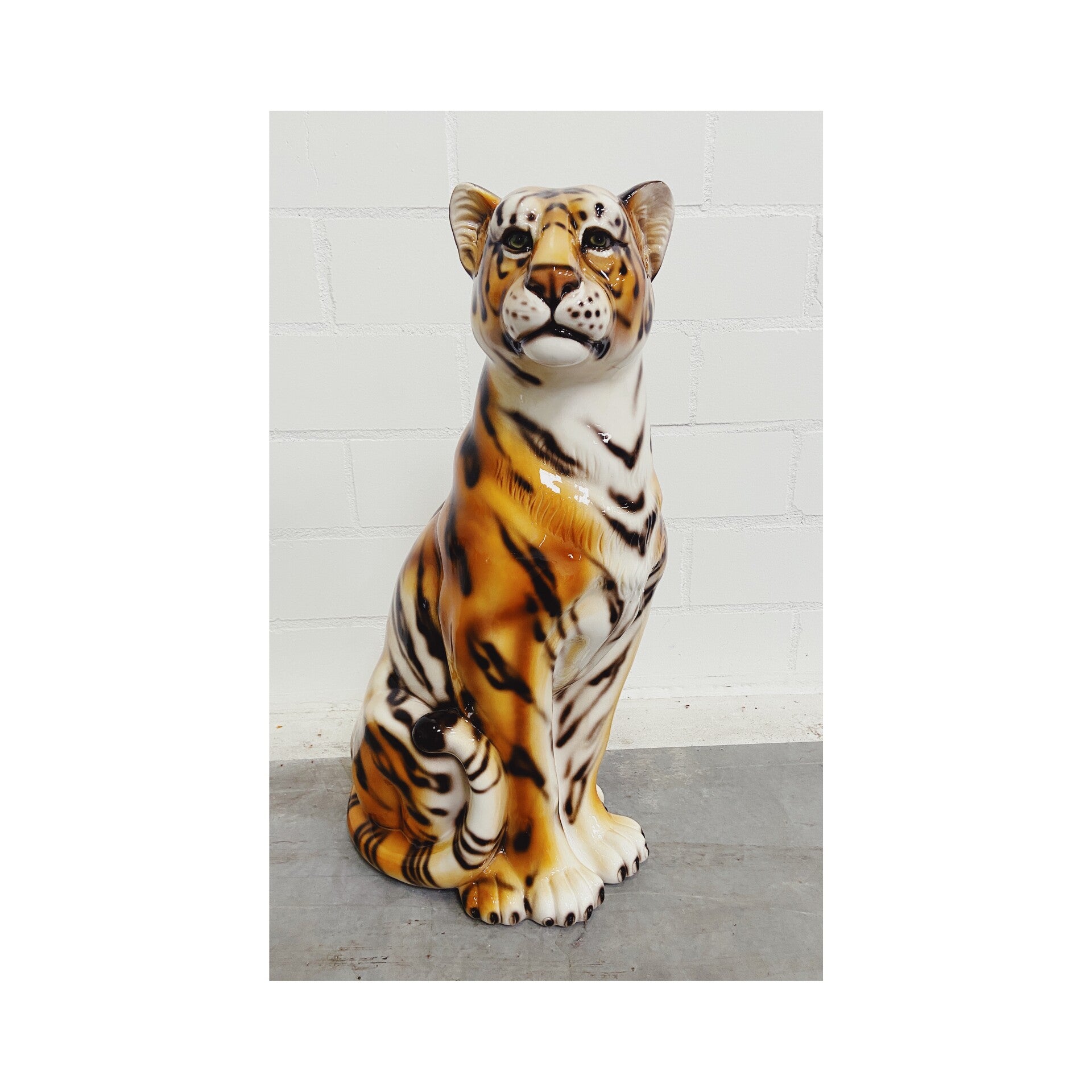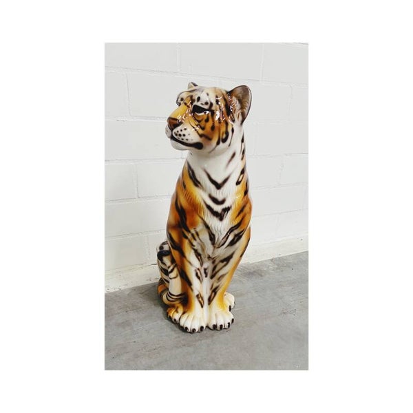 Hoe gaaf is dit prachtige tijger beeld! De Hollywood Regency Tijger is van handbeschilderd keramiek en made in Italy! Dit beeld zal een fantastische stoere look geven in je interieur!