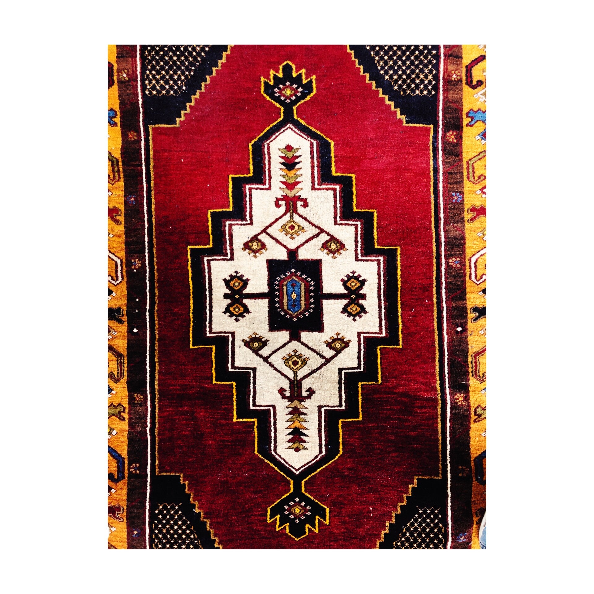 Prachtig Turks tapijt met een uniek patroon! Turkse tapijten worden ook wel Anatolische tapijten genoemd, wat verwijst naar de cultuur die zich in de oudheid ontwikkelde in het gebied van het tegenwoordige Turkije. De Turkse tapijten waren sterk beinvloed door de grieken die in de oudheid de tapijtproductie domineerden. Een veel gebruikt patroon is het geometrisch motief. Het tapijt heeft een kelim achtige structuur en is van een licht gewicht. Het kleed heeft wat zichtbare gebruikssporen naar leeftijd.