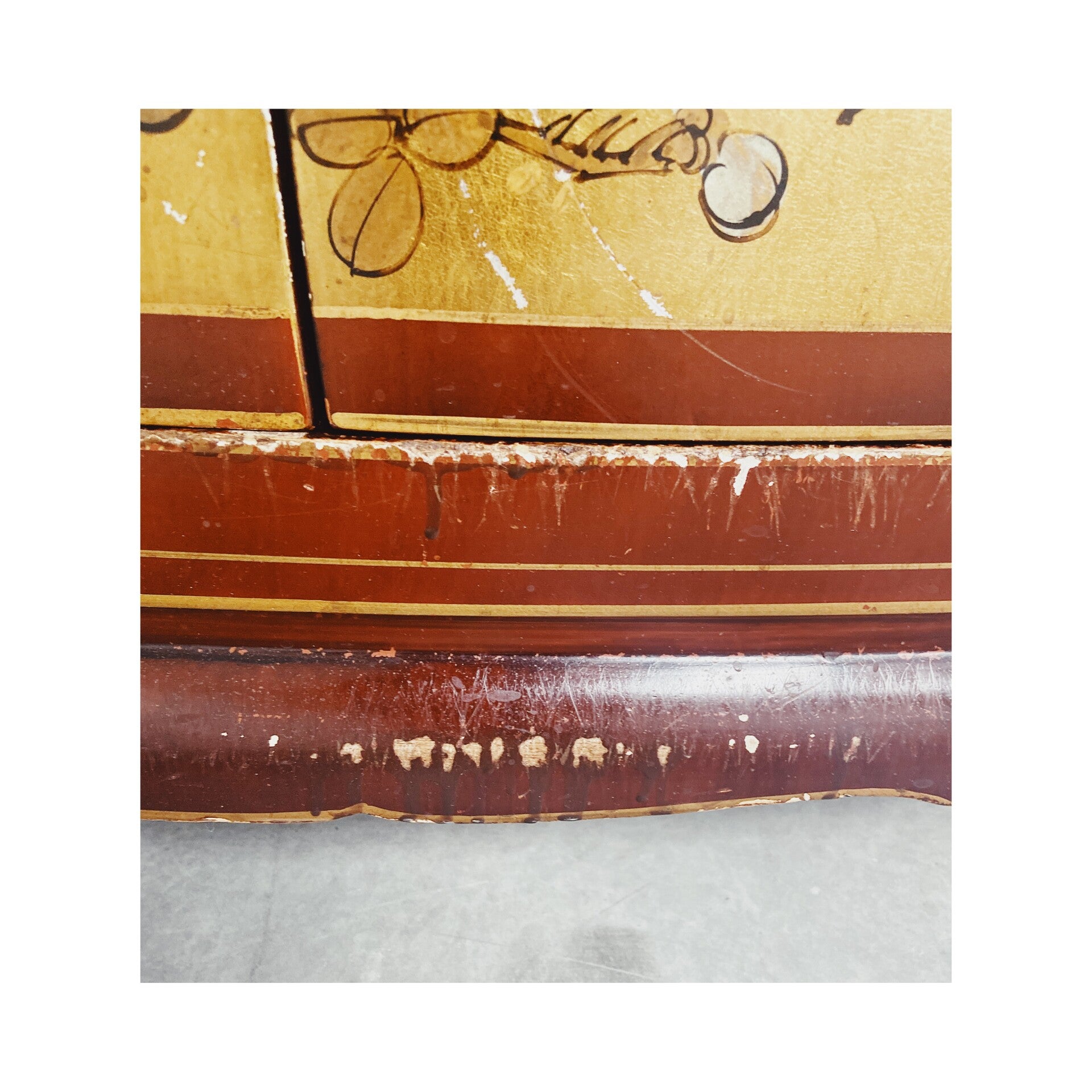 Het boven en ondervak hebben beide een uitschuifplank, die gebruikt kunnen worden voor een televisie en bijbehorende accessoires. Deze planken kunnen er ook uitgehaald worden! De kast heeft wat gebruikssporen gezien de leeftijd en heeft daarbij ook zichtbare verkleuring en craquelé op de rechterdeur. Verder is de kast in hele goede conditie en zal een waanzinnige unieke toevoeging zijn aan je interieur.