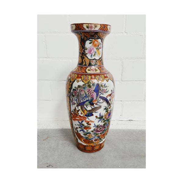 Mooie grote handgeschilderde Chinese porseleinen vaas. De vrolijke kleuren en beschilderingen maken deze vaas een aanwinst voor je interieur. De vaas verkeert in een goede gave staat. Afmetingen Hoogte: 61cm