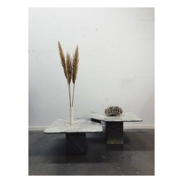 Deze knaller van een marmeren salontafel is een echte aanwinst voor je interieur. De tafel heeft een mooie wassing van grijs en witte tinten. De tafel is enorm zwaar door het massieve marmer en het bovenblad zit vast op het onderstel. Het meubel is in goede vintage conditie.