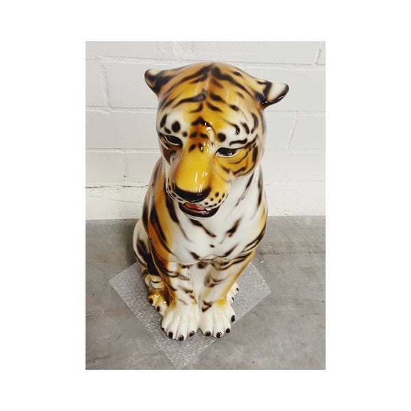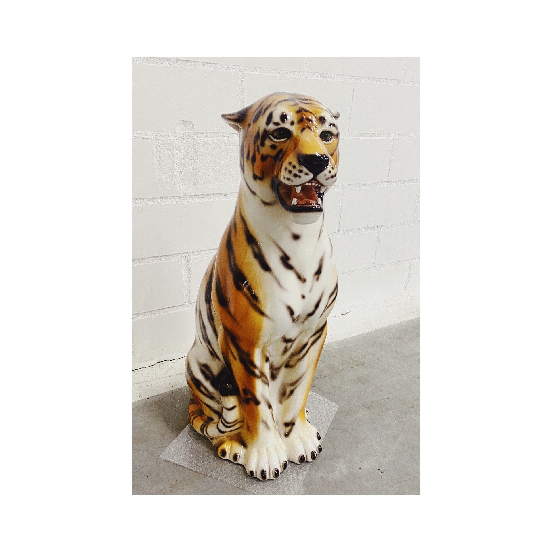 Hoe gaaf is dit prachtige tijger beeld! De Hollywood Regency Tijger is van handbeschilderd keramiek en made in Italy! Dit beeld zal een fantastische stoere look geven in je interieur!AfmetingenHoogte: 71cm