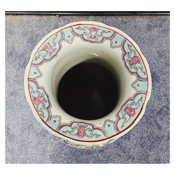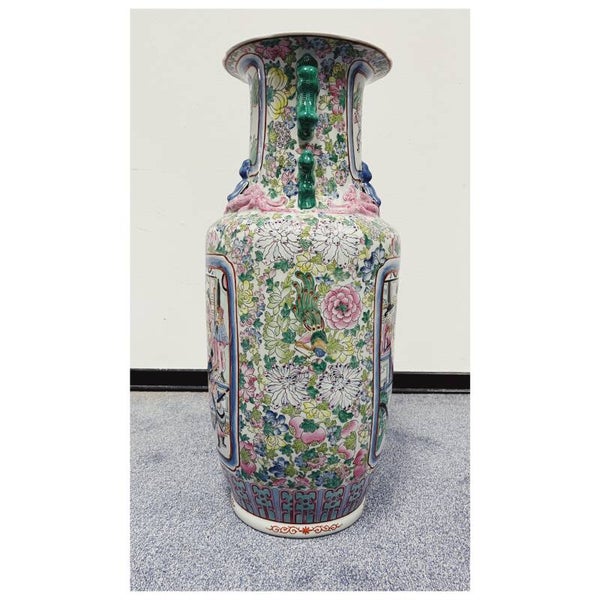 Mooie handgeschilderde Chinese porseleinen vaas. De vrolijke kleuren en beschilderingen maken deze vaas een aanwinst voor je interieur. De vaas is enorm groot en verkeert in perfecte vintage staat. Afmetingen Hoogte: 64cmDiameter: 23cm