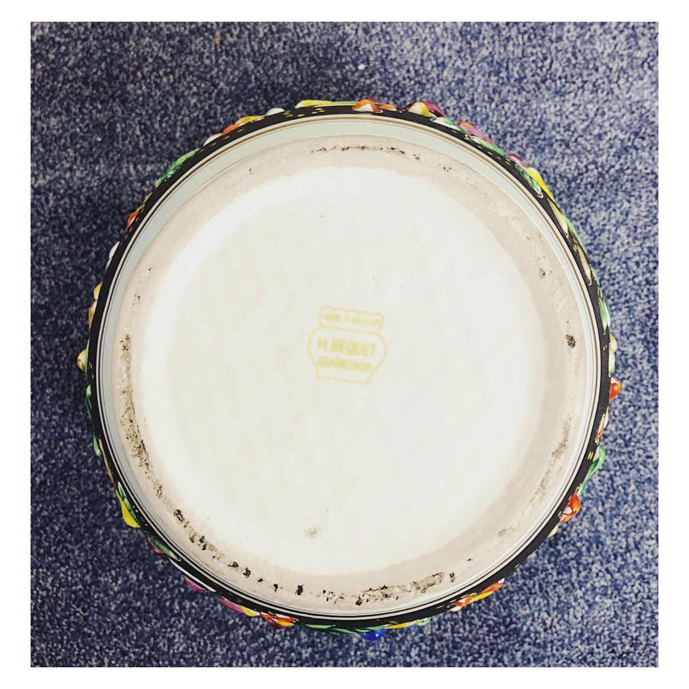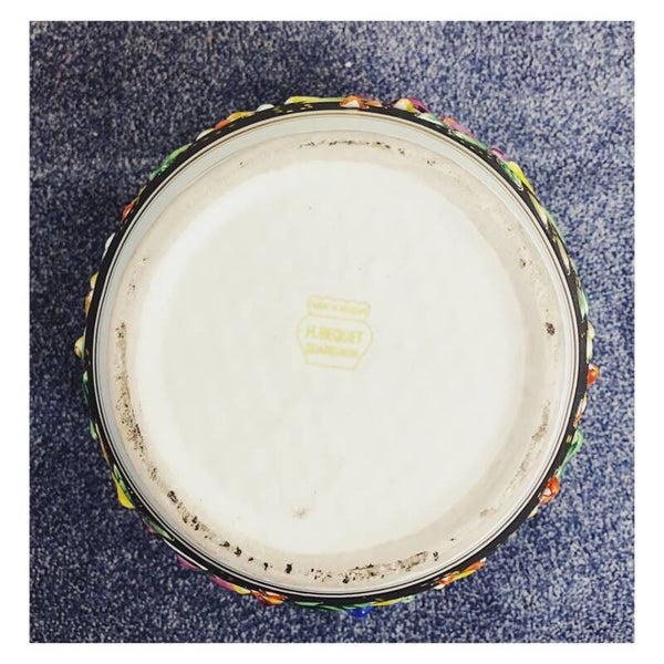 Kleurrijke handbeschilderde vintage vaas! De vaas komt uit het atelier van Hubert Bequet die van 1934 tot 1963 een atelier had in België. De vaas is in hele goede staat en kan met PostNL verzonden worden!Afmetingen Hoogte: 25cm