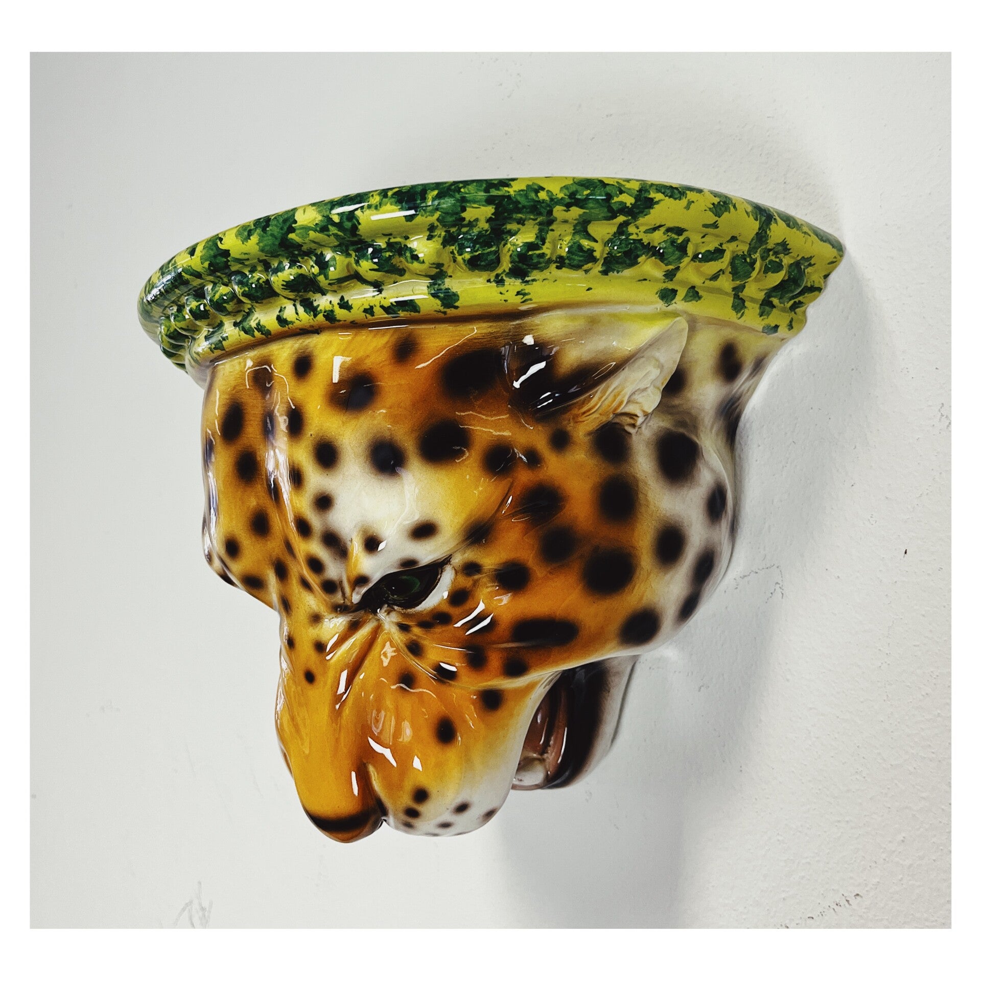 Uniek handgemaakt beeld van een luipaard. Dit Hollywood Regency beeld, vervaardigd van met de hand beschilderd keramiek en gemaakt in Italië, zal ongetwijfeld een verbluffende en stoere uitstraling aan je interieur toevoegen!