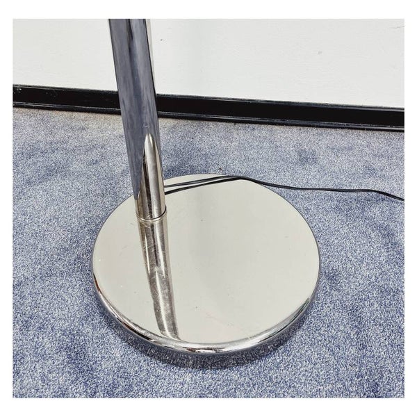 Vijf-armige vintage vloerlamp. De lamp is gemaakt van messing en heeft een zware messing voet. De vijf lampen werken nog naar behoren. De lampenkapjes hebben een zilveren gloed maar vertonen wel wat kleine gebruikssporten.