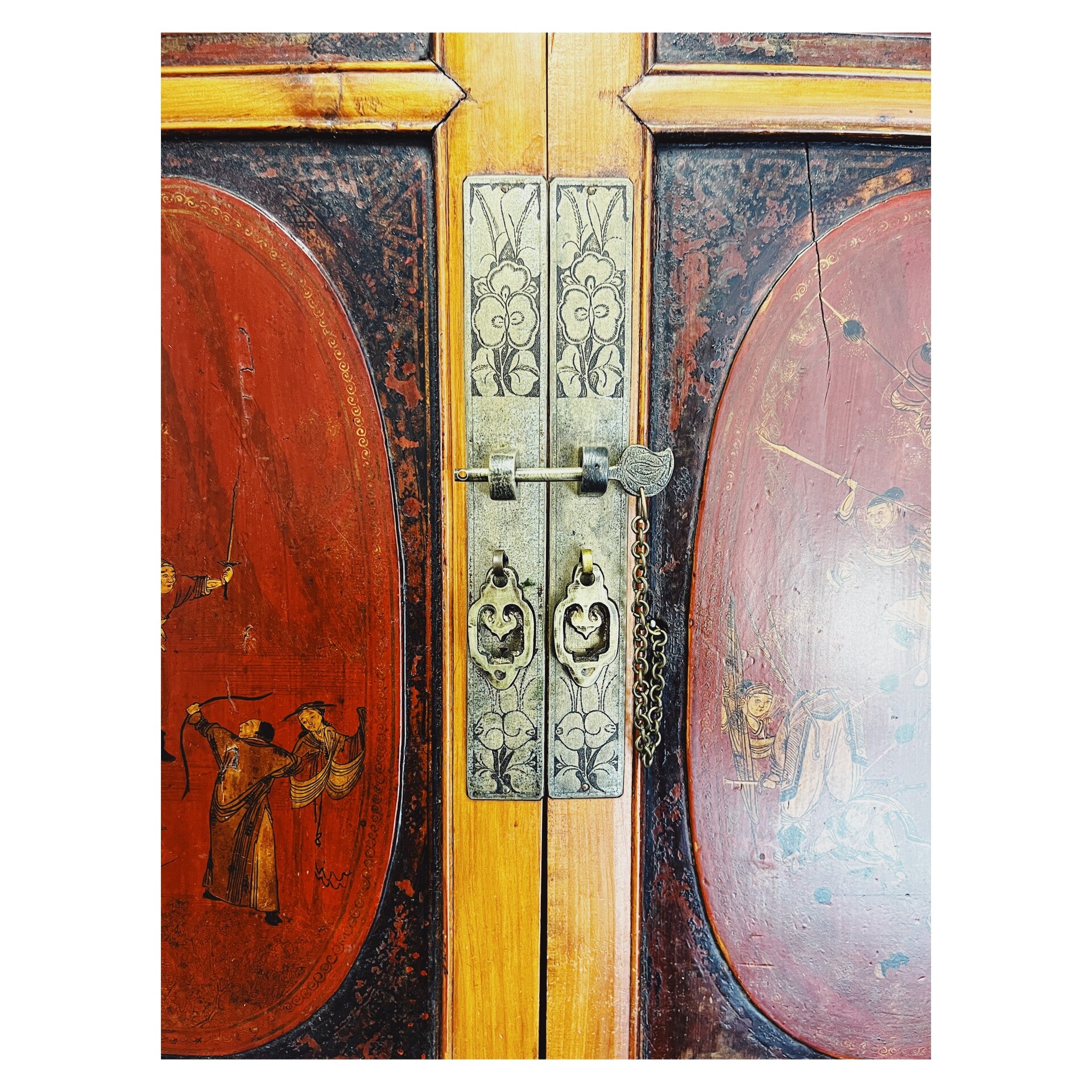 Daarnaast is de bovenkant van de kast beschilderd met vrolijke taferelen. De kast heeft hier en daar wat slijtage en kleine scheurtjes die passen bij een antieke kast. Maak gerust een afspraak om de kast te komen bekijken!