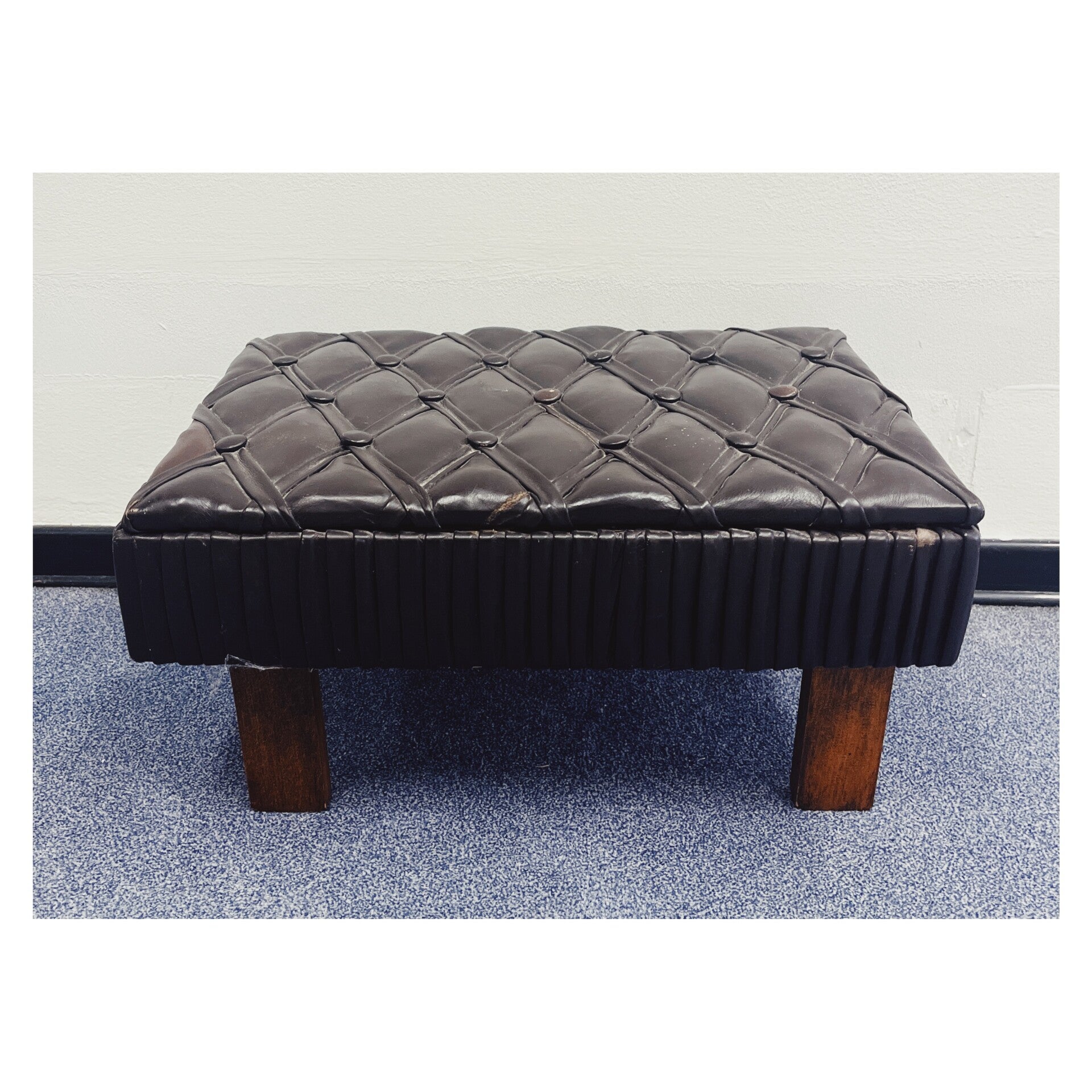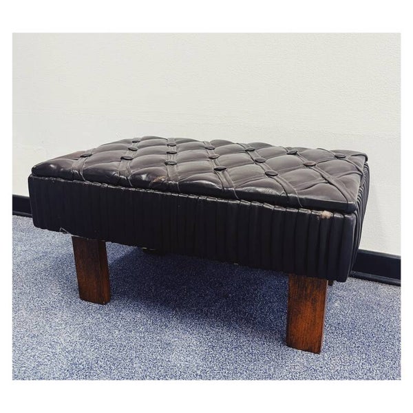 Vintage voetenbankje / krukje met leren bekleding.