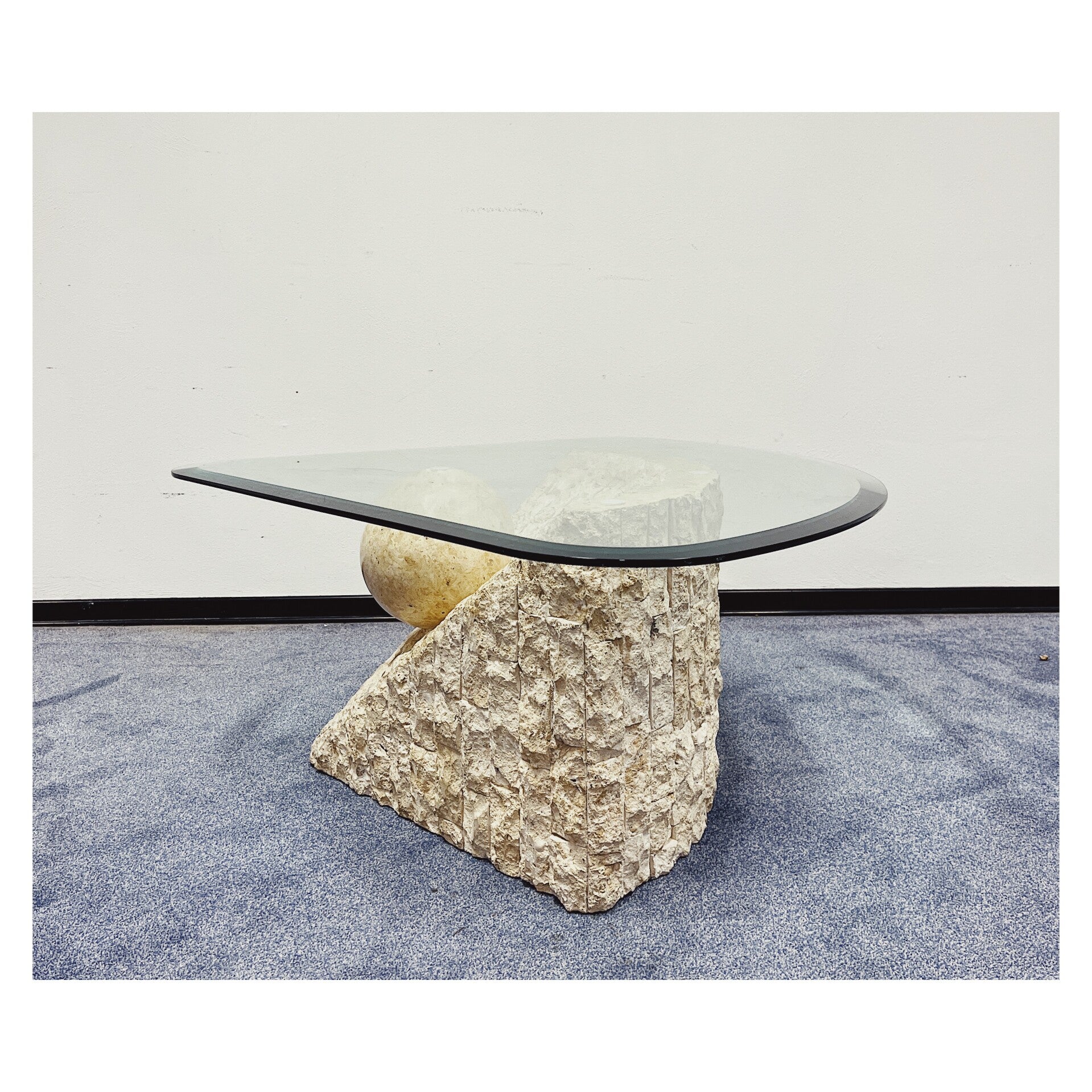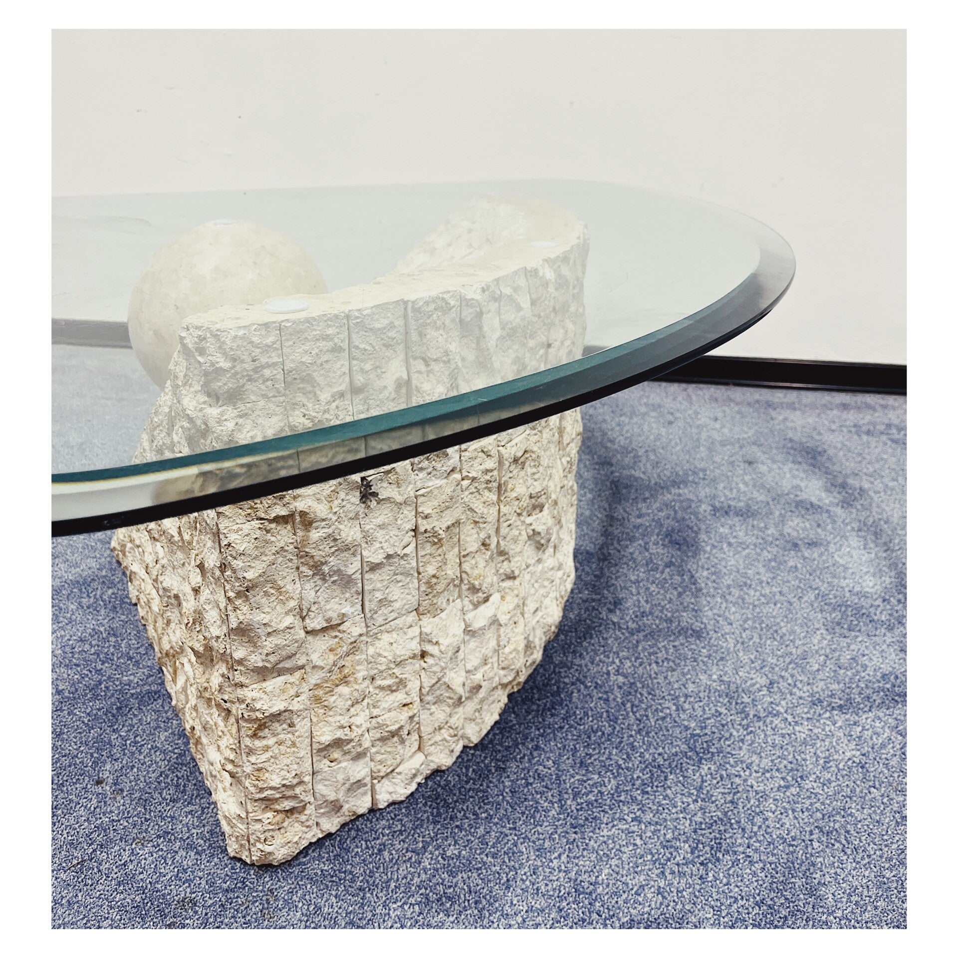 Vintage 80's salontafel met travertijn look onderstel.