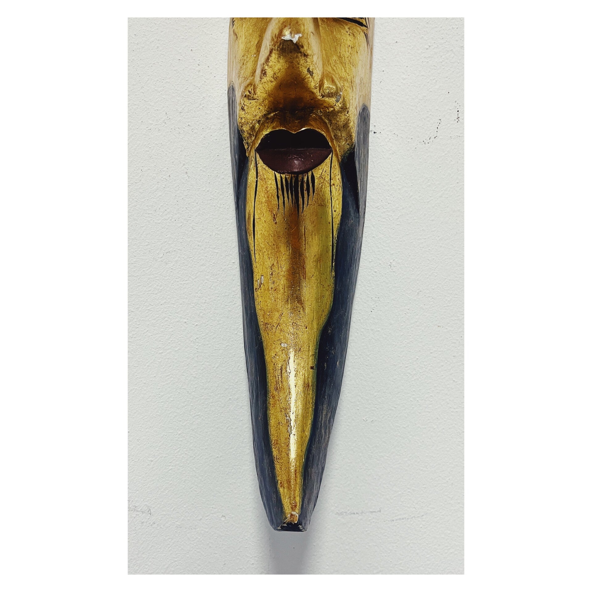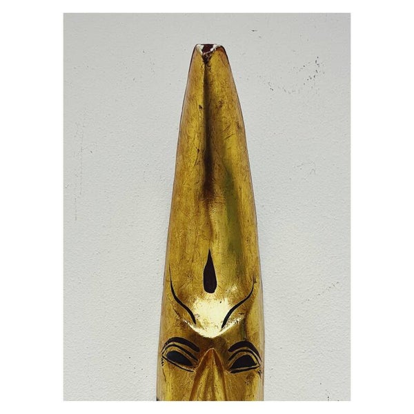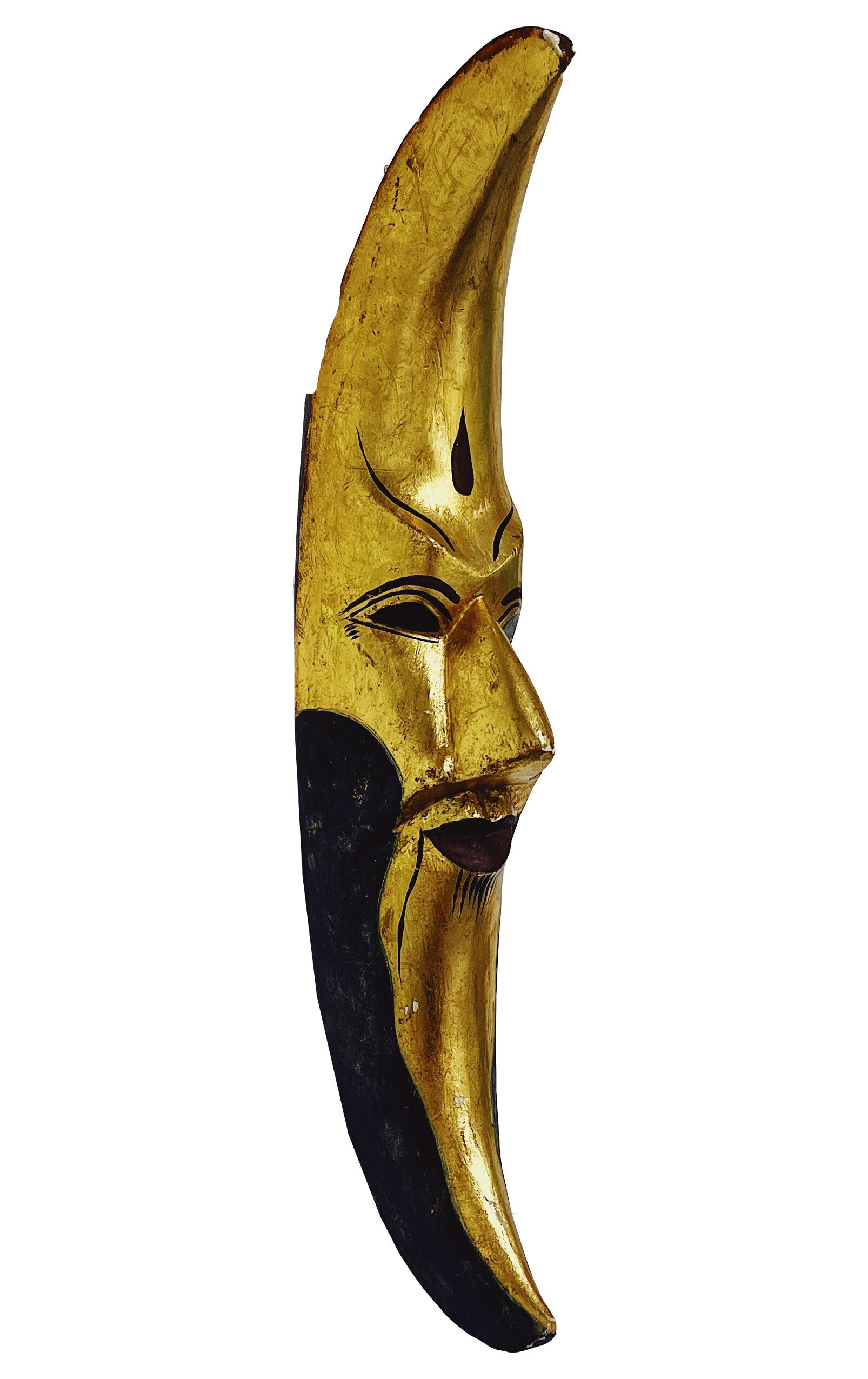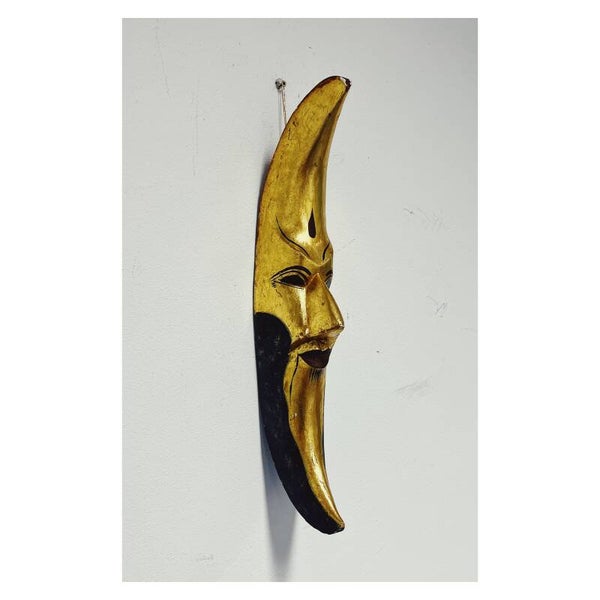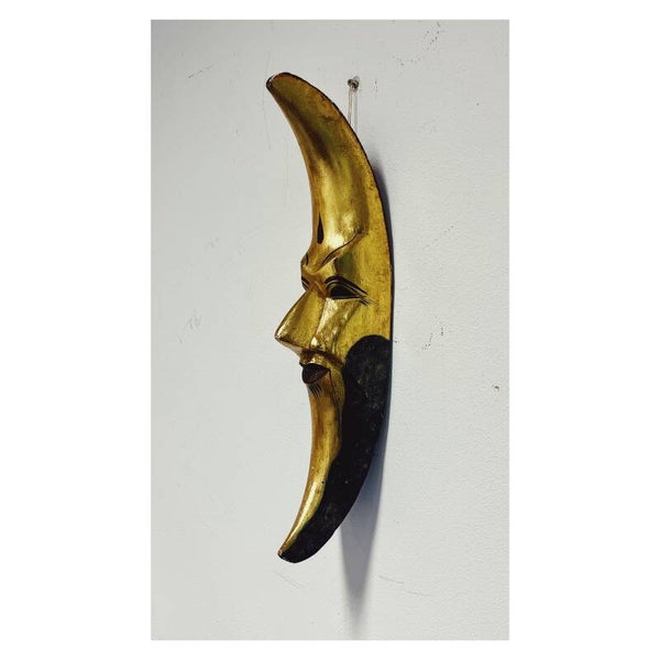 Deze uit hout gesneden gouden maan is een sfeervol decoratie object. De maan heeft een handig ophangsysteem en is in goede vintage conditie. Afmetingen Hoogte: 53cmBreedte: 10cm