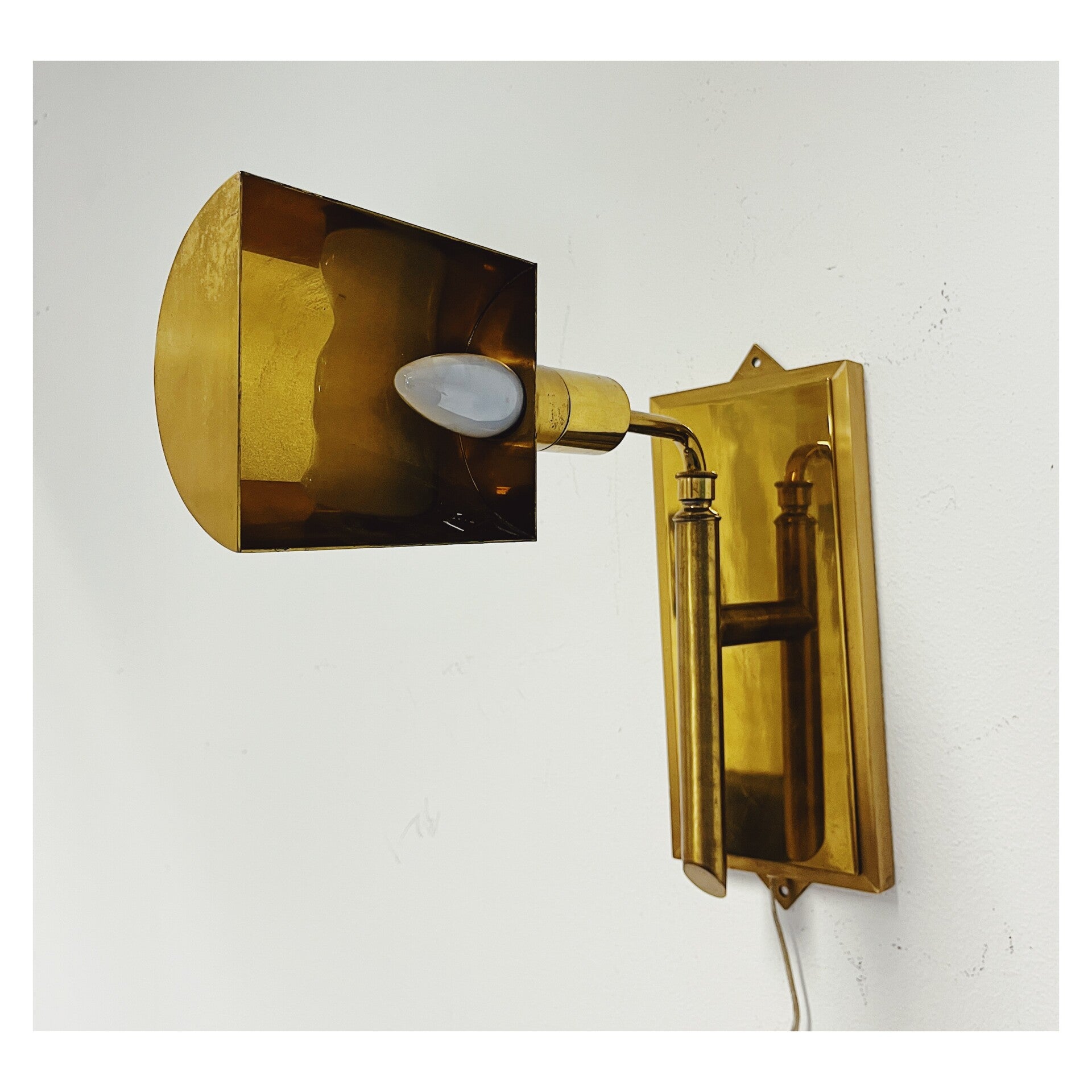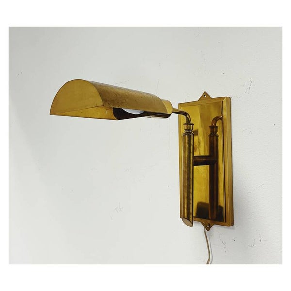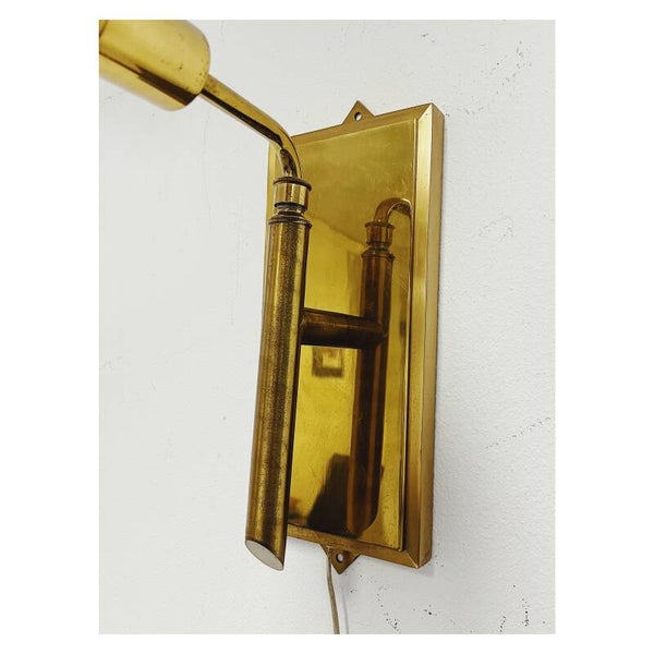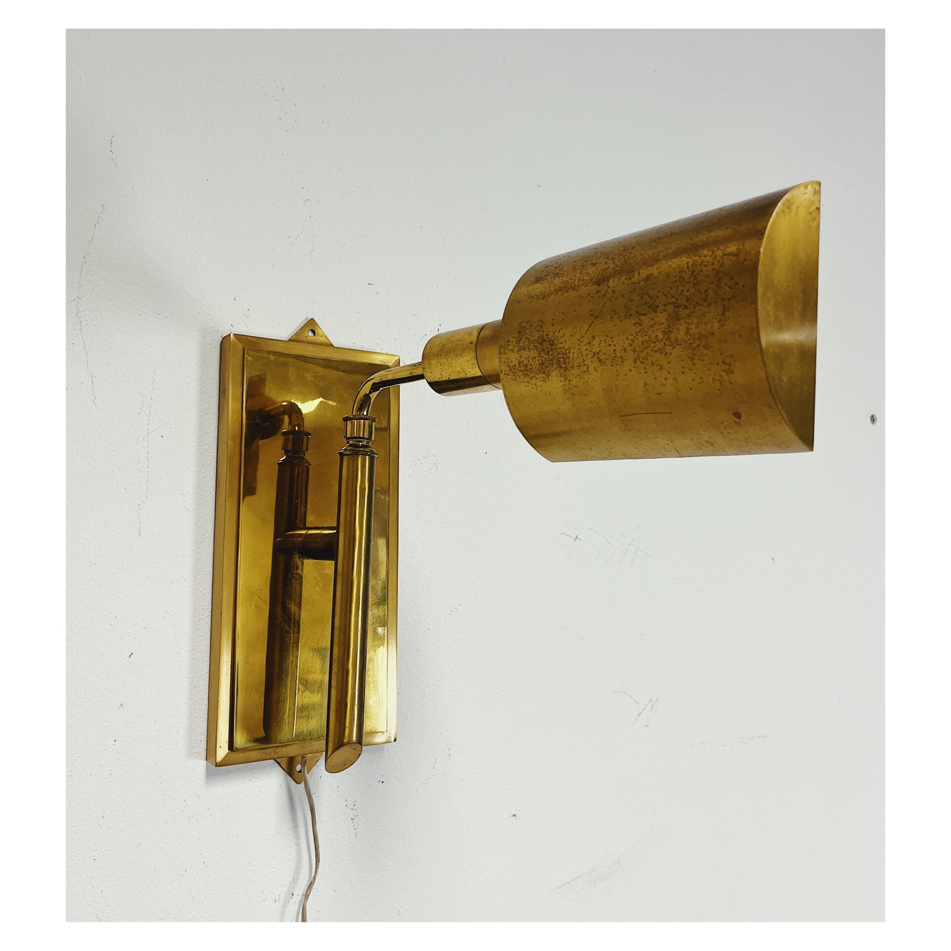 Vintage messing verstelbare wandlamp. De gouden lamp is van zware kwaliteit en werkt nog naar behoren. De wandlamp heeft hier en daar wat roest plekjes maar ziet er nog heel goed uit!