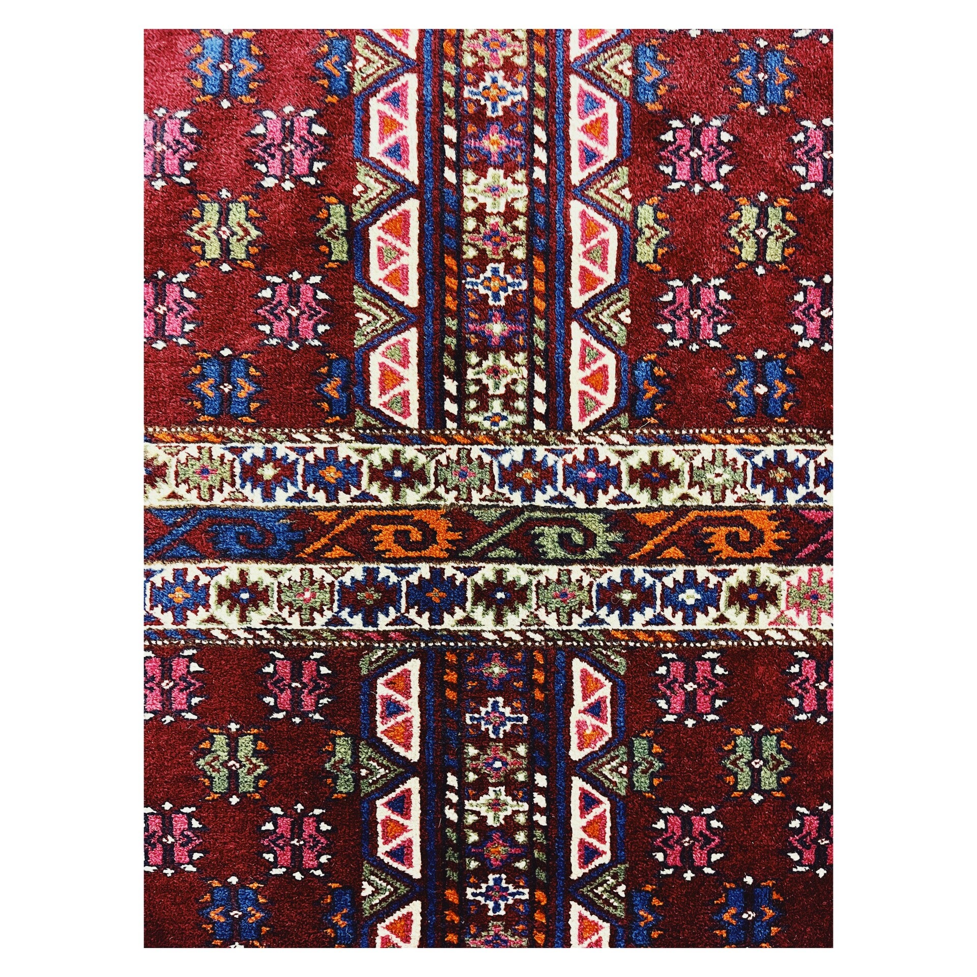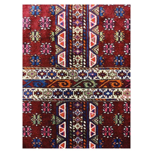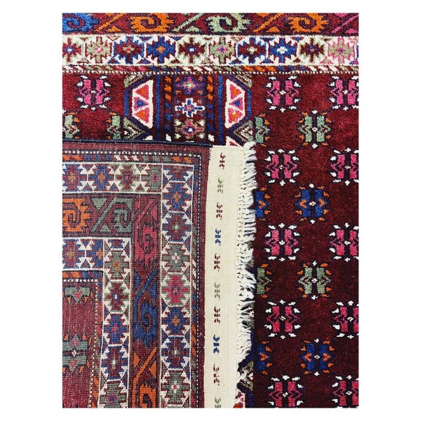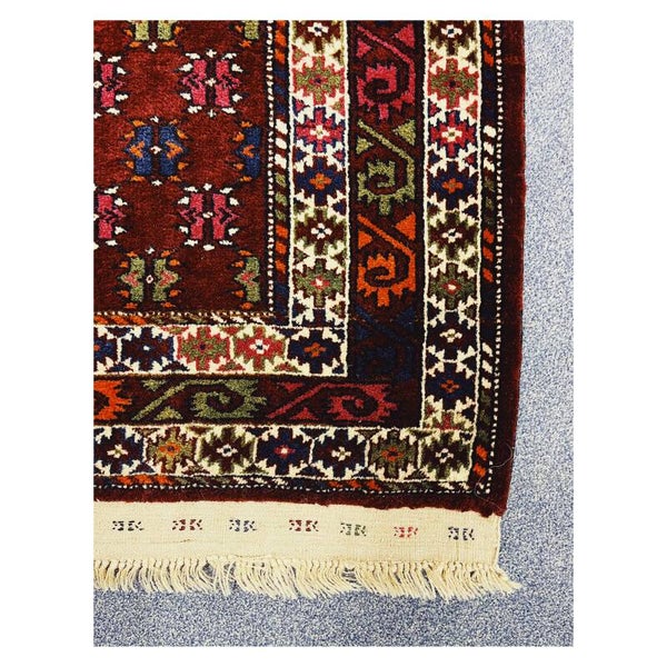 Prachtig Handgeknoopt vloerkleed afkomstig uit de Kaukasus. Tapijten afkomstig uit de Kaukasis kunnen afkomstig zijn uit Rusland, Armenië, Azerbeidzjan e.d. Deze tapijten hebben als kenmerk geometrische rechtlijnige vormen gevarieerd met speelse elementen. Het tapijt heeft een donkerrood bijna paarse ondergrond, is handgeknoopt en in goede conditie gezien de leeftijd!