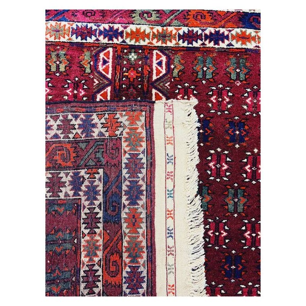 Prachtig Handgeknoopt vloerkleed afkomstig uit de Kaukasus. Tapijten afkomstig uit de Kaukasus kunnen afkomstig zijn uit Rusland, Armenië, Azerbeidzjan e.d. Deze tapijten hebben als kenmerk geometrische rechtlijnige vormen gevarieerd met speelse elementen. Het tapijt heeft een diep rode ondergrond (helderder rood in het echt), is handgeknoopt en in goede conditie gezien de leeftijd!