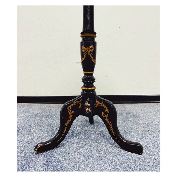 Leuk vintage wijntafeltje met handbeschilderde details. Het tafeltje heeft wat lichte beschadigingen bij de pootjes, maar is verder in goede staat!AfmetingenHoogte: 58cmDiameter: 44cm* Dit pakket kan verzonden worden met PostNL